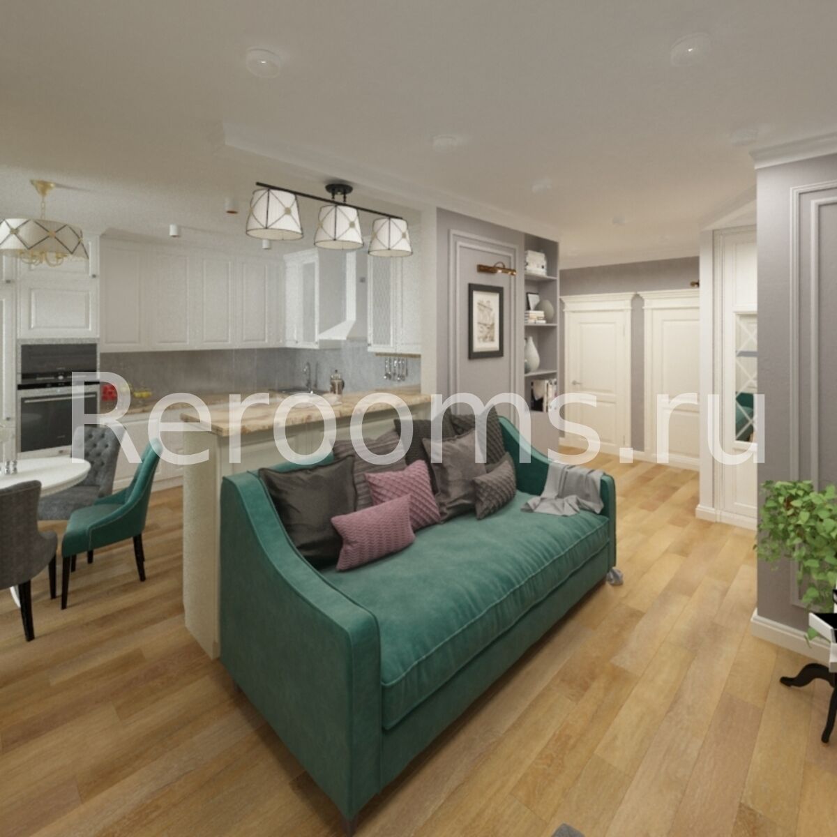 За основу оформления интерьера в данной квартире взят классический стиль. Гармоничное сочетание разнообразных светлых оттенков в отделке и декоре одновременно придает квартире строгость и классический шарм. Здесь царит атмосфера домашнего тепла и уюта: функциональная кухня-гостиная, изысканная спальня и стильнаые детские.