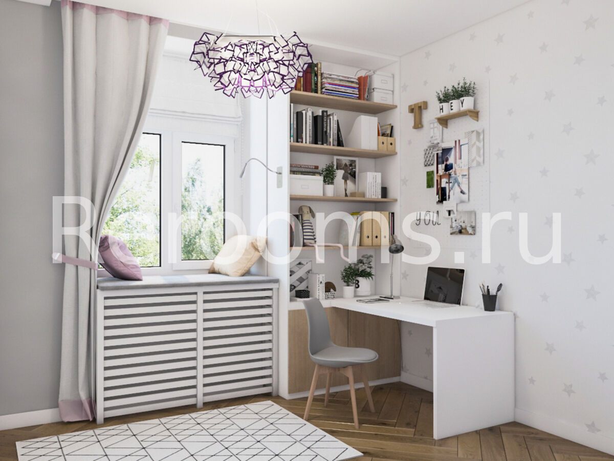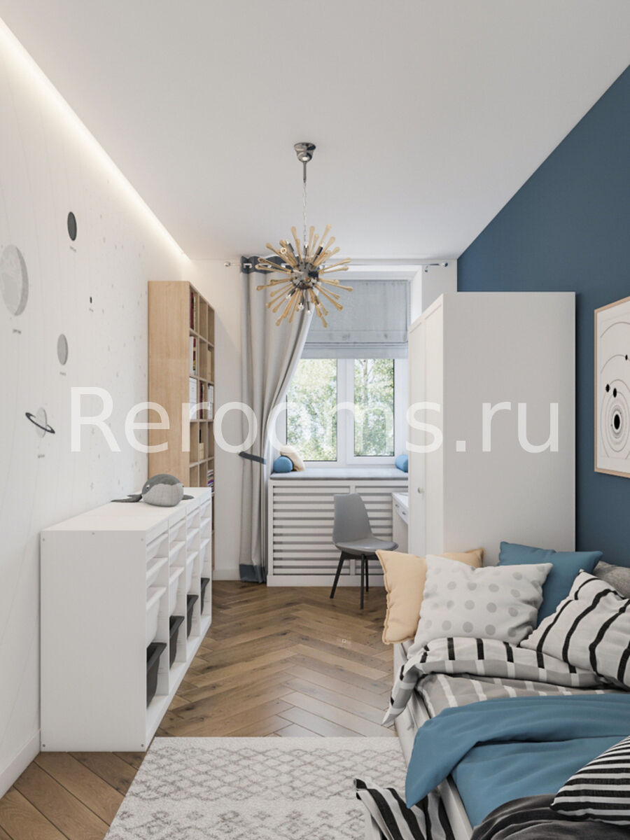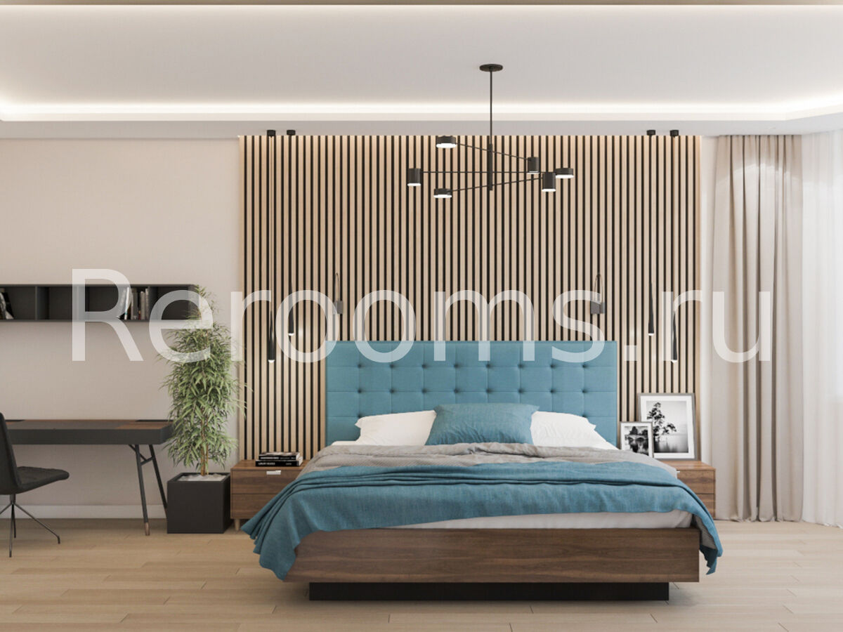 Дизайн-проект квартиры выполнен в стиле минимализм. Чистота линий, простые формы и светлые тона с контрастными акцентами создают в помещении гармоничную и уютную атмосферу. В спальне все лаконично и удобно. Особое внимание привлекает акцентная стена, с деревянными рейками. Изюминка интерьера - велосипеды, размещенные на одной из стен и недалеко от окна. Они придают помещению стильный и ультрасовременный вид. Столовая выглядит лаконично и элегантно. Уютные детские комнаты выполнены с учетом всех потребностей малышей. Кухонная зона минималистична и функциональна.