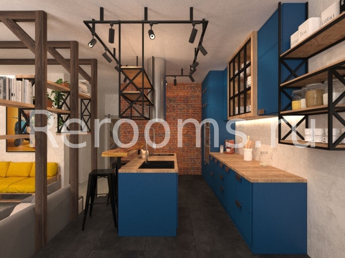 Дизайн-проект этой квартиры – яркий пример индустриального стиля, воплощенного в небольшом пространстве. Планировка, фактура, отделочные материалы идеально соответствуют духу лофта, а все мелкие детали гармонично вписаны в общую стилистику. Здесь вполне гармонично соседствуют кирпичная кладка, отделка под бетон, металл, грубое дерево и модные индустриальные элементы декора.
