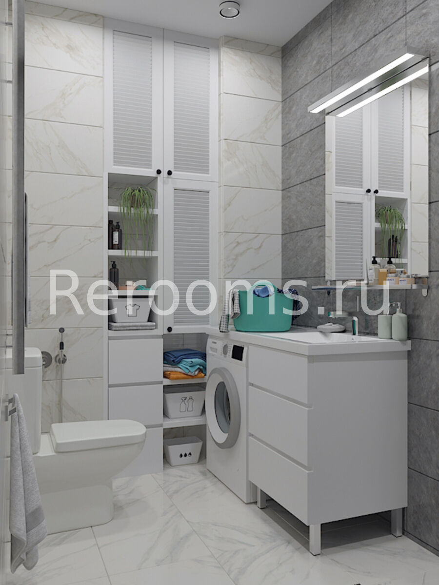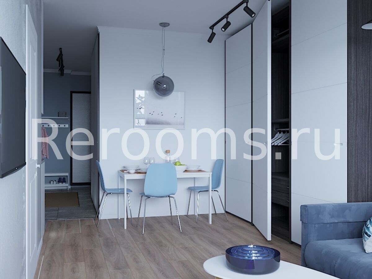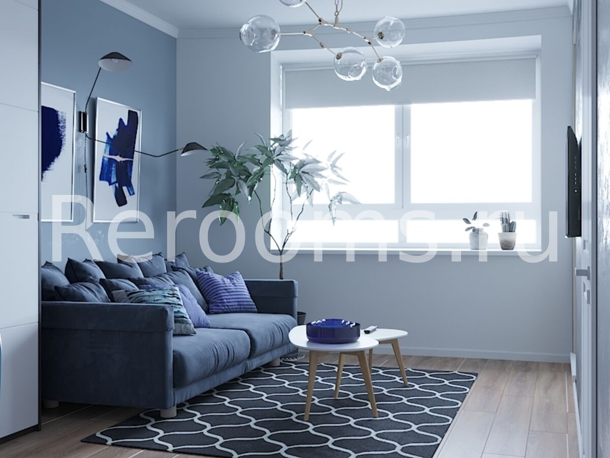 Проект двухкомнатной квартиры выполнен в стиле Американская классика. Цветовая гамма сдержана и гармонична, здесь преобладают серый, голубой и белый цвета. В архитектуре и обстановке помещения наблюдается характерная для классических интерьеров симметрия. Каждый элемент пространства хорошо продуман и идеально вписан в общую концепцию.