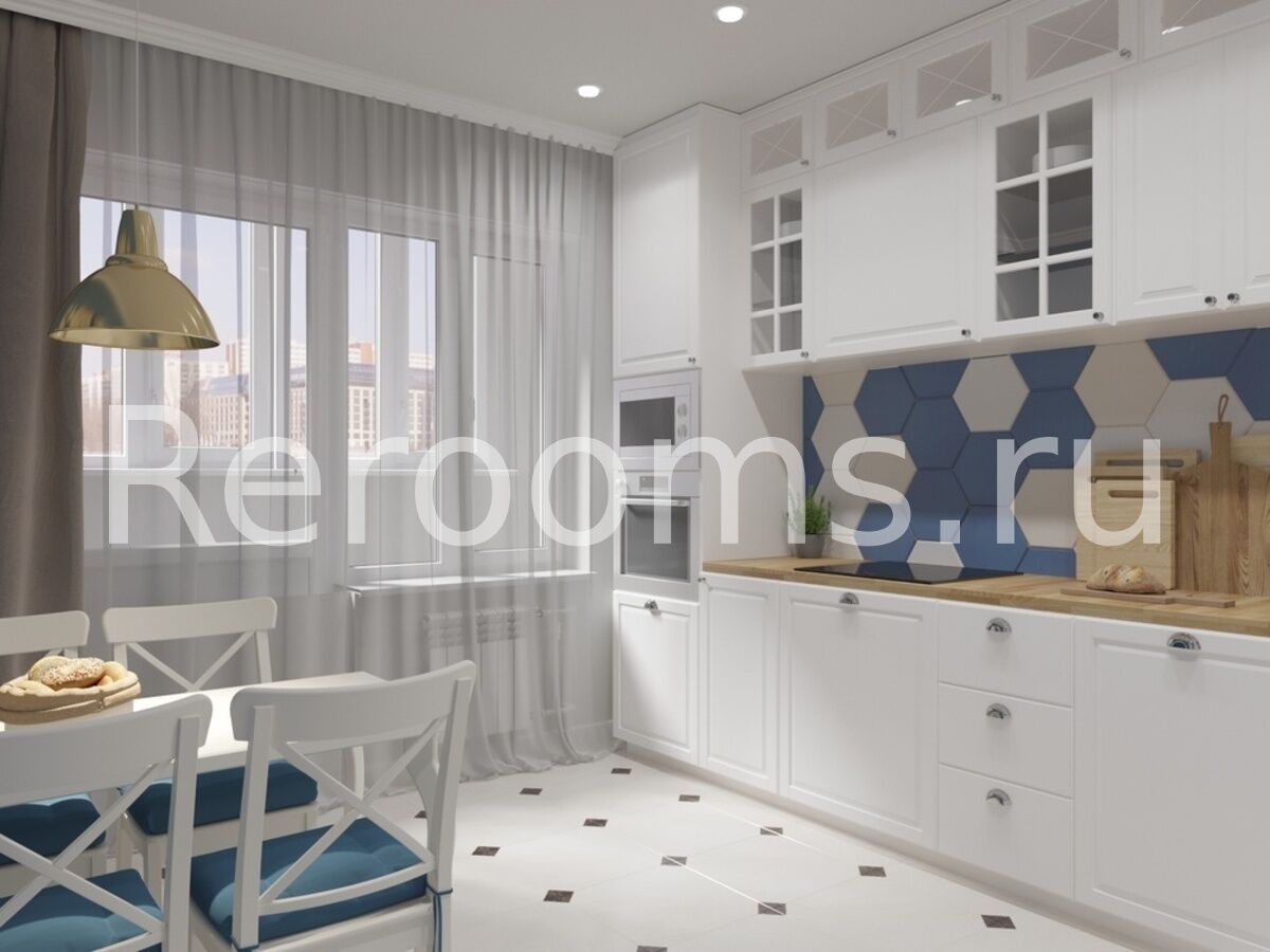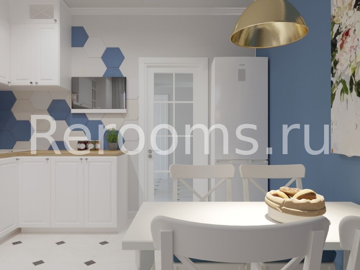 Дизайн-проект этой достаточно большой четырехкомнатной квартиры получился очень изысканным и утонченным. Удачное сочетание различных стилистических направлений создает в интерьере неповторимую атмосферу уюта и гармонии. В качестве базовых цветов выбраны белый и бежевый, которые в свою очередь разбавлены более яркими и глубокими оттенками синего, коричневого и зеленого. Материалы, подобранные для отделки квартиры, отличаются высоким качеством и необычайно эстетичны. Каждое помещение здесь не только красиво, но и функционально.