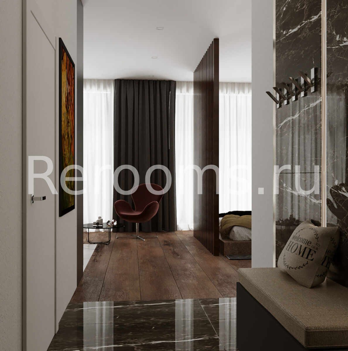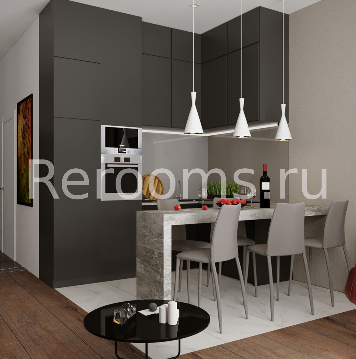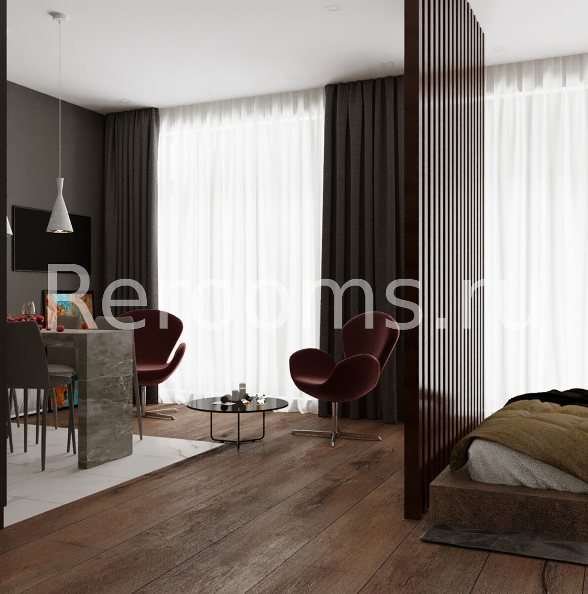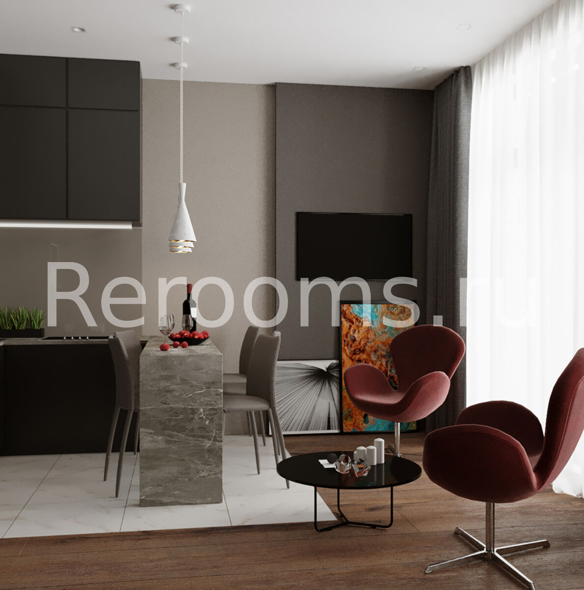 Дизайн-проект этой однокомнатной квартиры выполнен в стиле минимализм. Светлые тона с темными акцентами, лаконичные линии и простые архитектурные формы создают в интерьере ощущение простора и свободы. Грамотное зонирование позволило разместить на небольшой площади все самое необходимое: компактную кухню, стильную гостиную и комфортную спальню. В интерьере квартиры нет ничего лишнего и каждый предмет идеально вписан в пространство.
