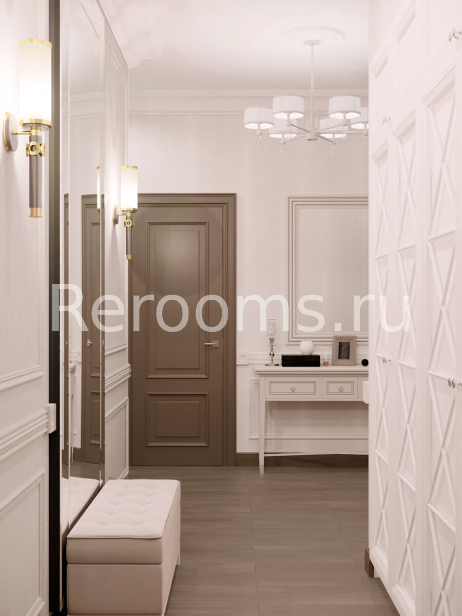В интерьерах, выполненных в стиле современная классика, гармония и красота соседствуют с удобством и функциональностью. Они не перегружены деталями и подчеркивают респектабельность и изысканный вкус хозяев дома. Ярким примером воплощения стиля современная классика в интерьере является эта четырехкомнатная квартира. Здесь все продумано до мелочей. Цвет, отделка, композиция, а также разнообразные приемы декорирования - все это создает в квартире неповторимую атмосферу комфорта и уюта.