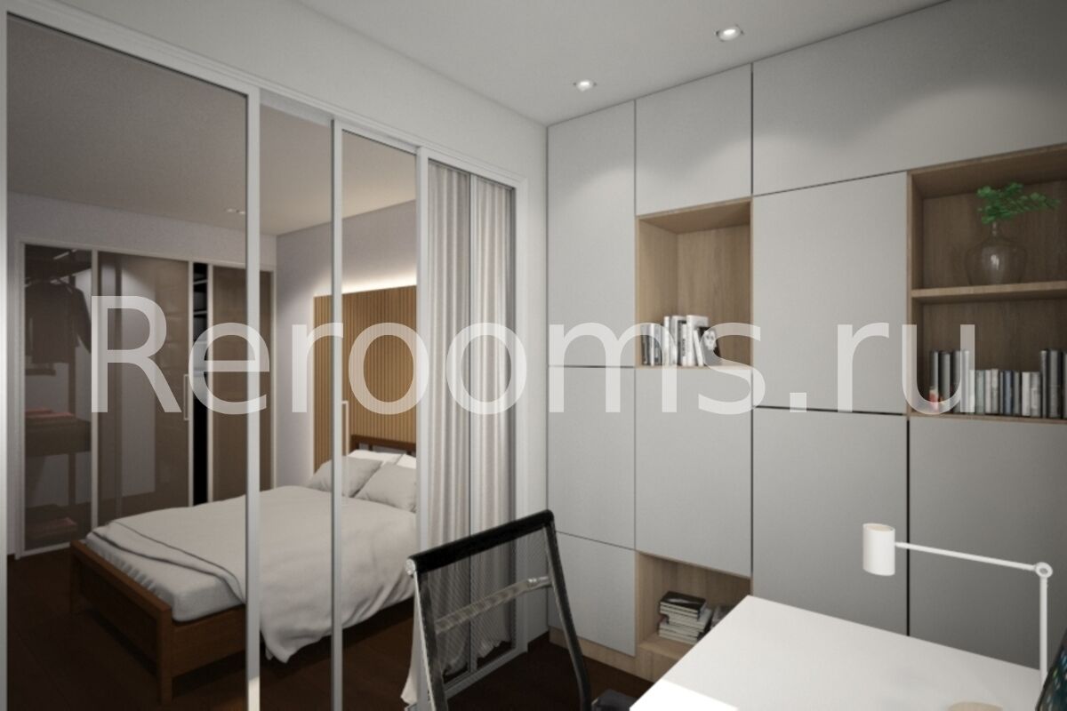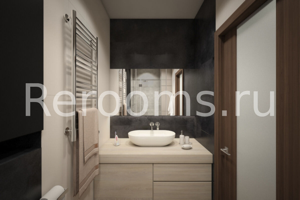 Дизайн-проект этой однокомнатной квартиры выполнен в стиле минимализм. Светлые тона с темными акцентами, лаконичные линии и простые архитектурные формы создают в интерьере ощущение простора и свободы. Грамотное зонирование позволило разместить на небольшой площади все самое необходимое: компактную кухню, полноценную спальню, и удобный кабинет. В интерьере квартиры нет ничего лишнего и каждый предмет идеально вписан в пространство.