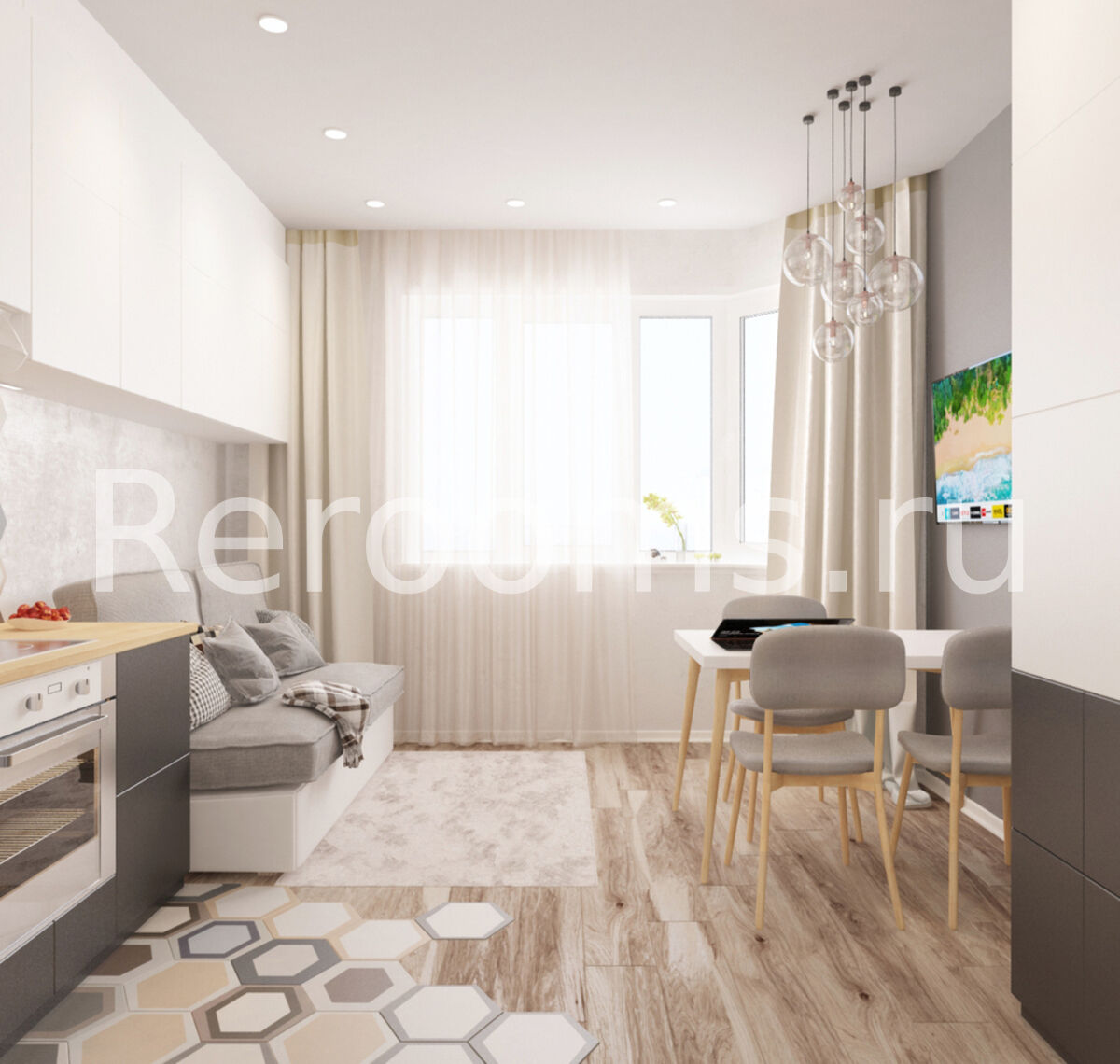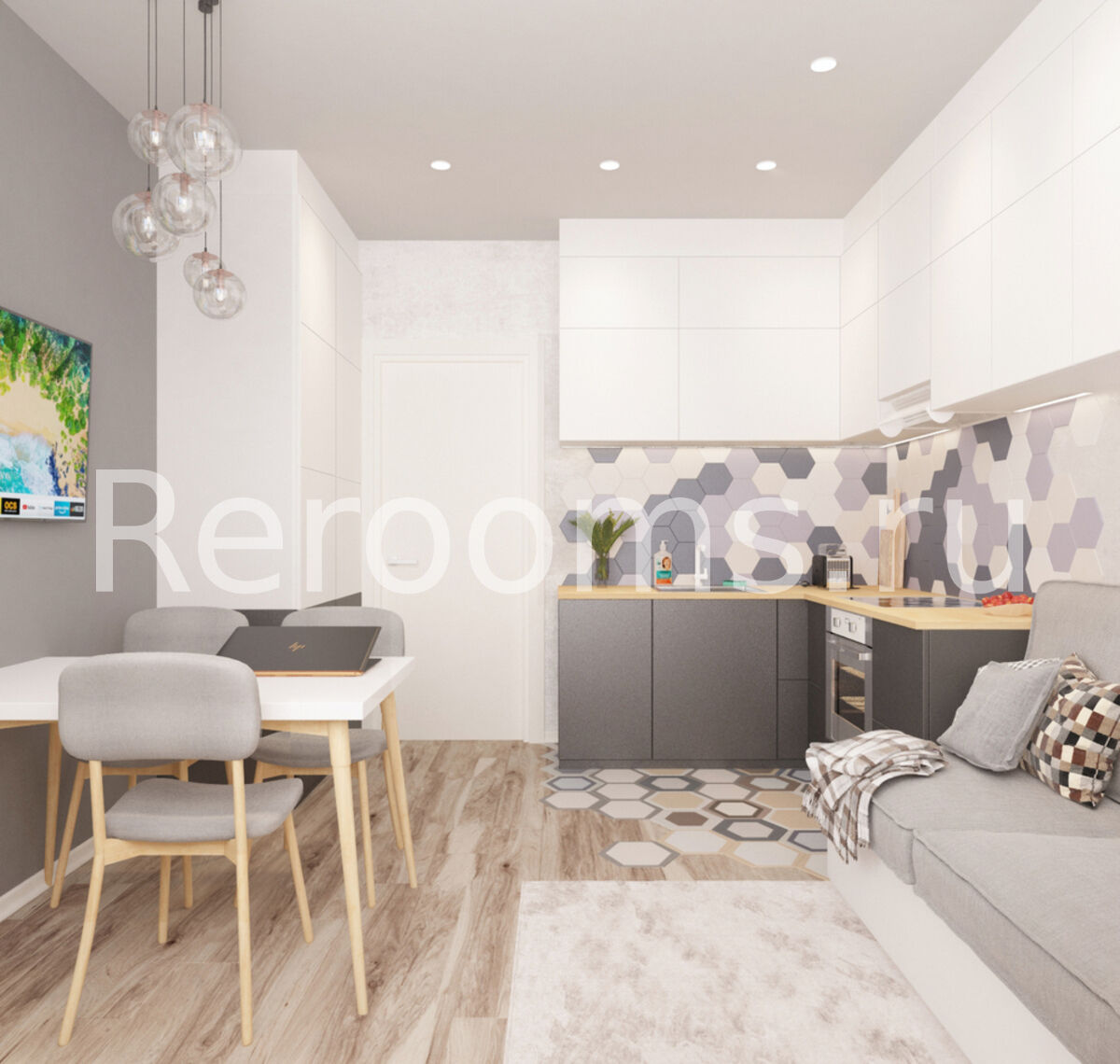 Дизайн-проект этой однокомнатной квартиры выполнен в скандинавском стиле. Интерьер отличается своей простотой, лаконичностью и изысканным внешним видом. В качестве основных цветов выбраны характерные для скандинавского дизайна серый,белый и бежевый цвета. Наличие натуральных материалов в отделке и оформлении интерьера создает в нем особую атмосферу тепла и уюта. Стильные аксессуары являются эффектным украшением пространства.