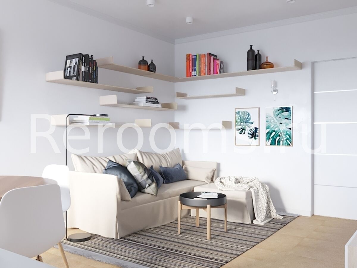 Проект этой двухкомнатной квартиры выполнен в скандинавском стиле. Красивый лаконичный дизайн создает в помещении расслабляющую атмосферу и располагает к отдыху. В интерьере преобладают светлые тона, характерные для скандинавской стилистики. Красивые текстуры под натуральное дерево, модная плитка и сдержанный функциональный декор создают в квартире неповторимую атмосферу уюта и гармонии.
