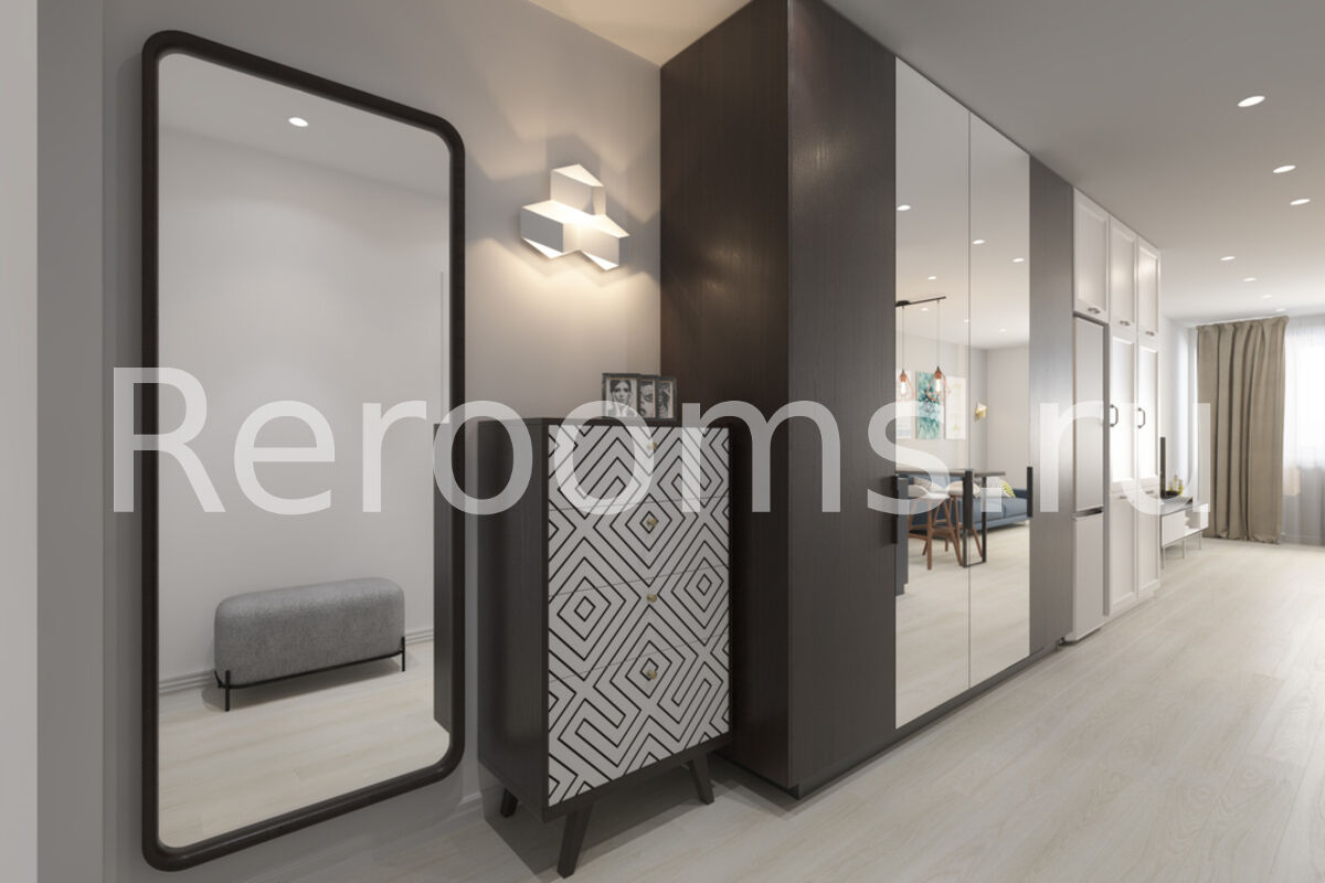 Дизайн-проект этой небольшой квартиры-студии выполнен в Скандинавском стиле. Интерьер отличается лаконичностью, функционализмом и необычайной изысканностью. В качестве основных цветов выбраны характерные для данной стилистики белый, серый и как акцентный - черный. Качественные отделочные материалы и основательный подход к оформлению интерьера сделали эту квартиру визуально привлекательной и невероятно красивой. Дизайнеры использовали различные варианты подсветки, что придало интерьеру дополнительный уют.