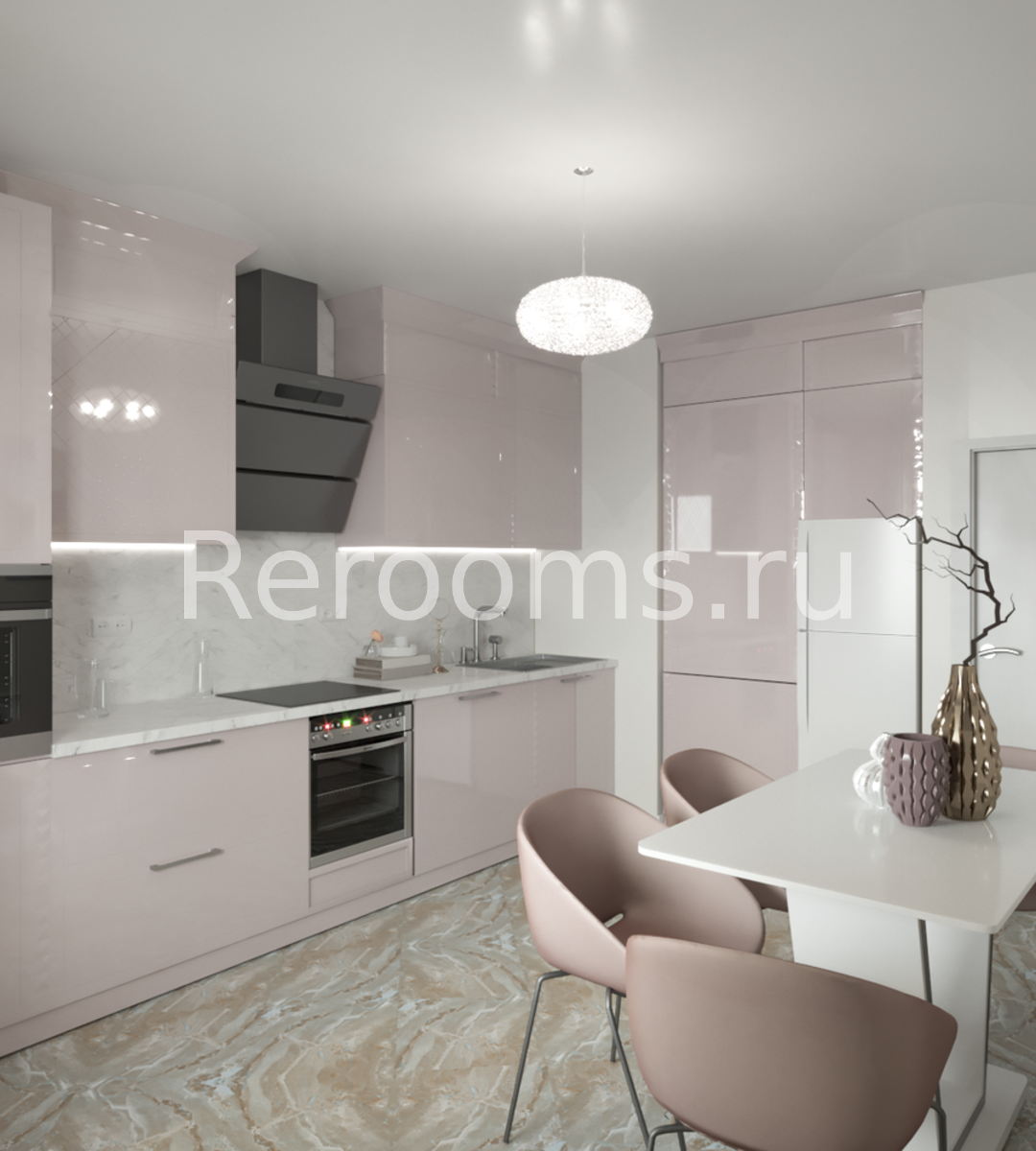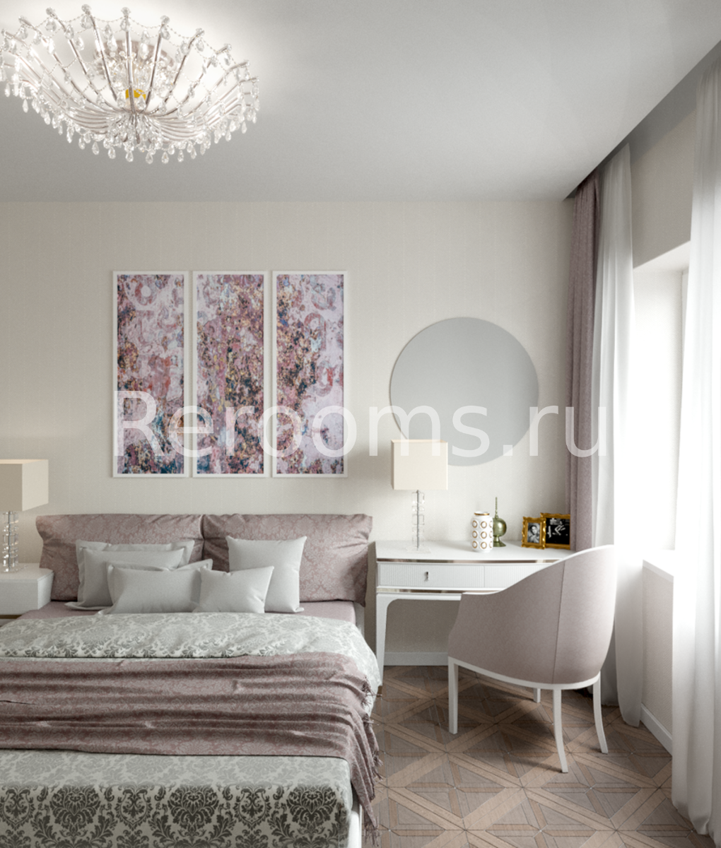 Интерьер этой двухкомнатной квартиры, отличается легкостью и изяществом, присущим стилистике арт-деко. Строгие геометрические формы и четкие линии сочетаются с обилием изысканных текстур и декоративных элементов. Различные оттенки розового, бежевого, жемчужного цветов в сочетании с эксклюзивными материалами полностью соответствуют концепции великолепного арт-деко.