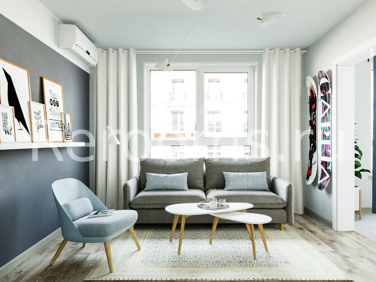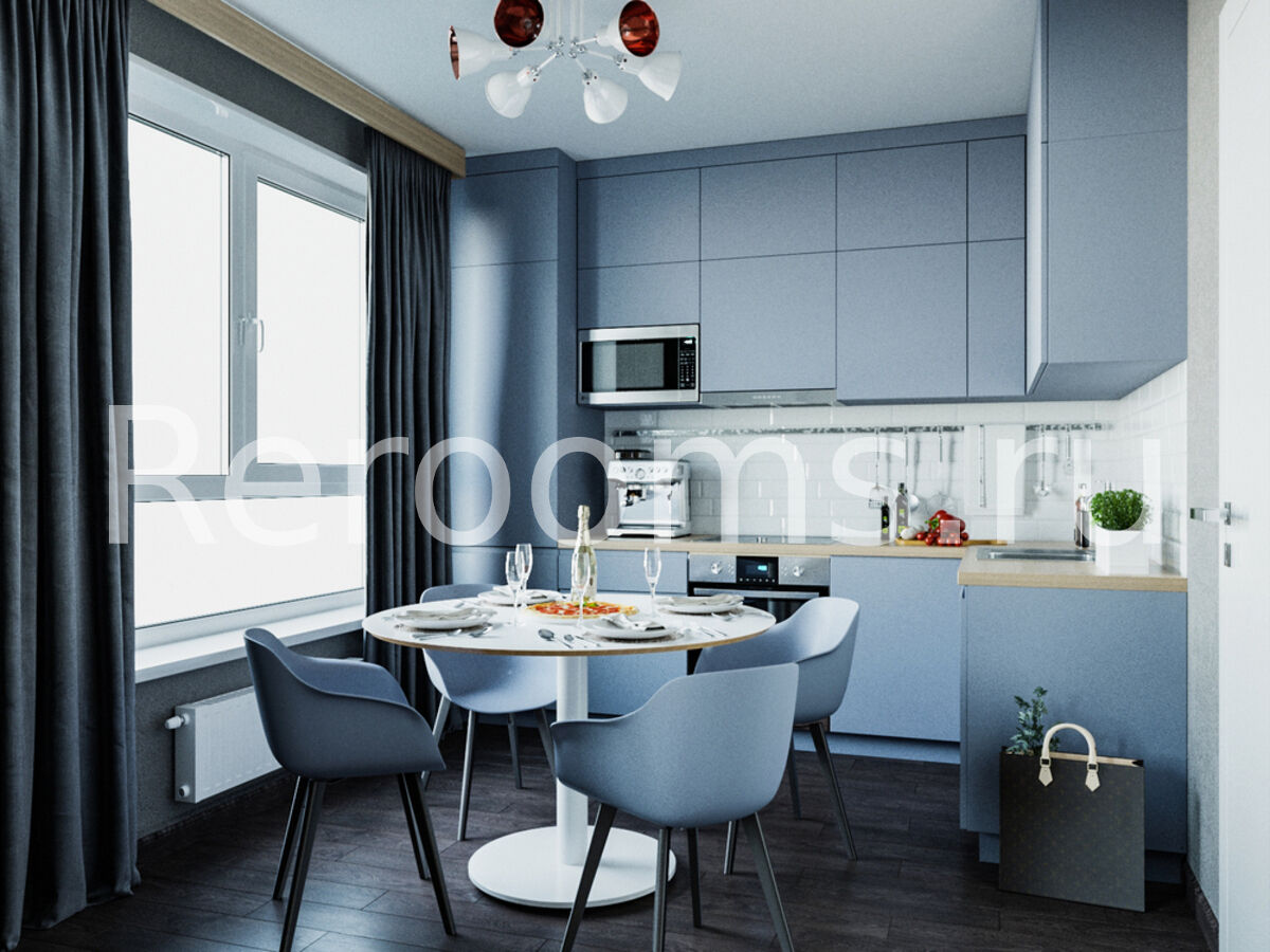 Дизайн-проект этой двухкомнатной квартиры выполнен в Скандинавском стиле. Несмотря на простоту и лаконичность сканди-стилистики, интерьер отличается необычайной изысканностью. В качестве основных цветов выбраны классические для скандинавского дизайна белый, синий и серый цвета. В спальне они удачно дополнены красивым оттенком шоколадно-розового цвета. Наличие натуральных материалов в отделке и оформлении создает в помещении особую атмосферу тепла и уюта.