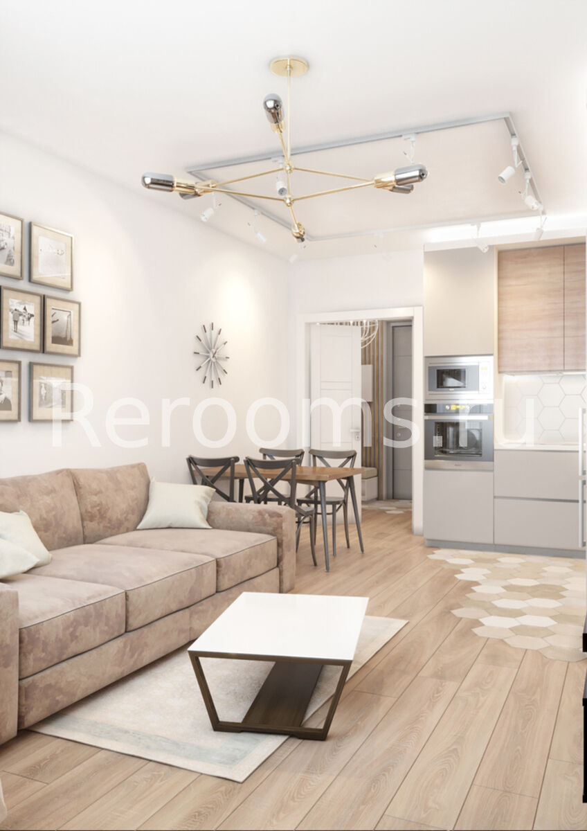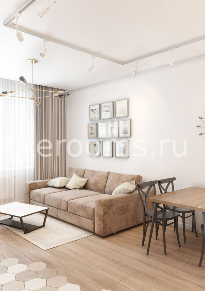 В качестве направления в дизайне помещения использован стиль современная классика. Общие принципы организации такого интерьера: простота, симметрия и равновесие в размещении мебели, цветовая гамма в бежевых и коричневых оттенках. Классический стиль интерьера имеет более сдержанное оформление, в котором меньше торжественности за счет облегченных форм и светлых оттенков.