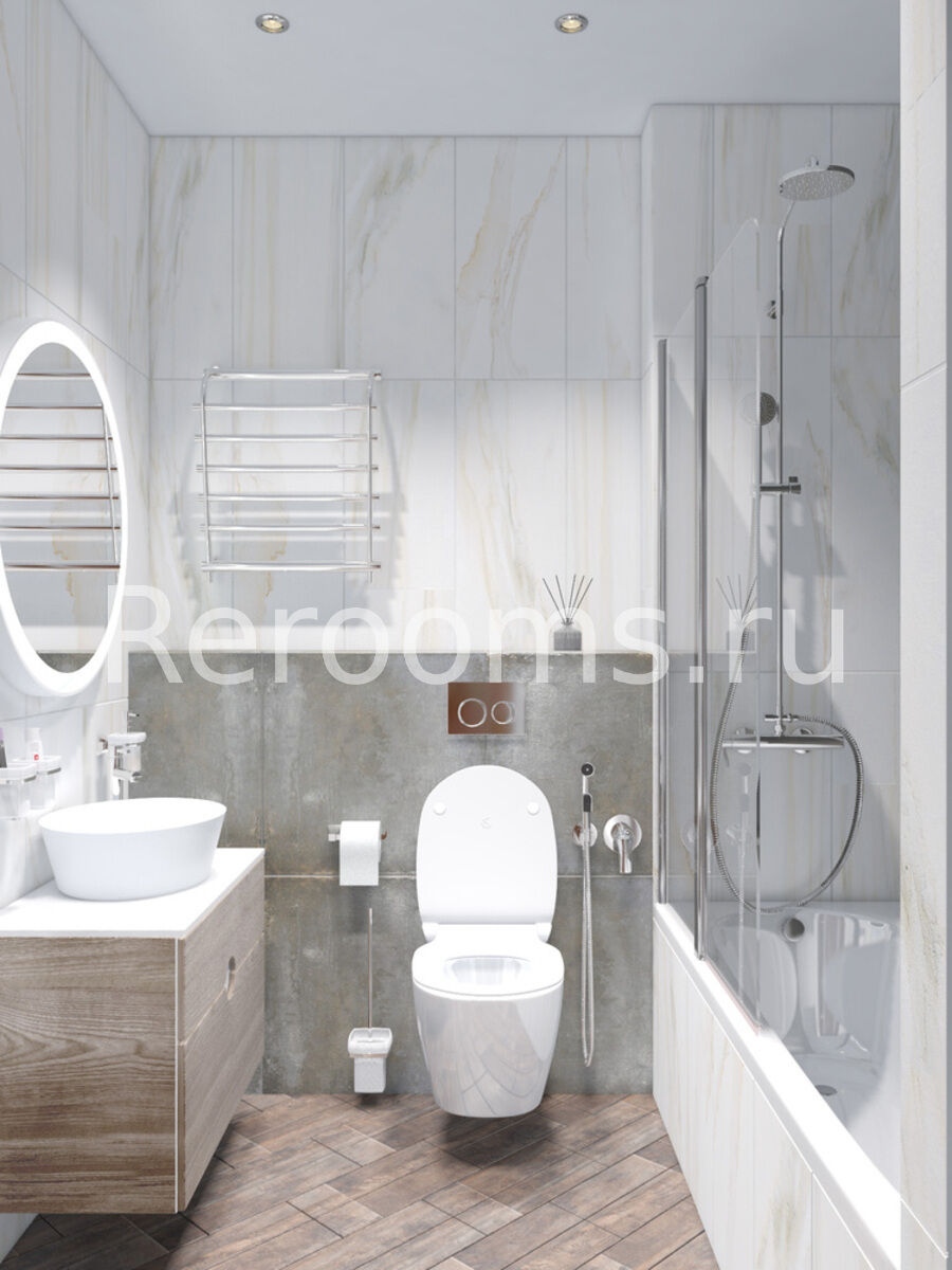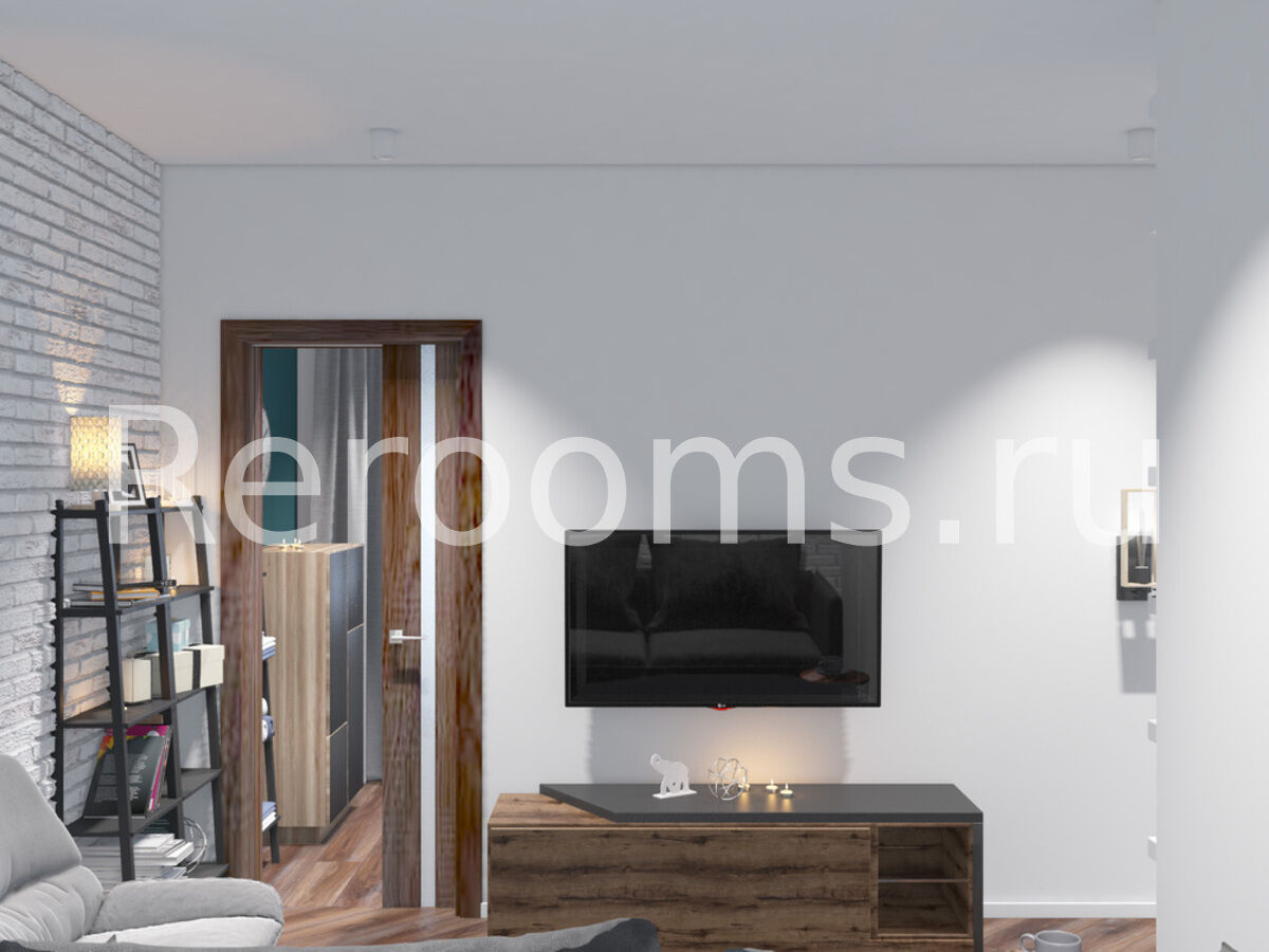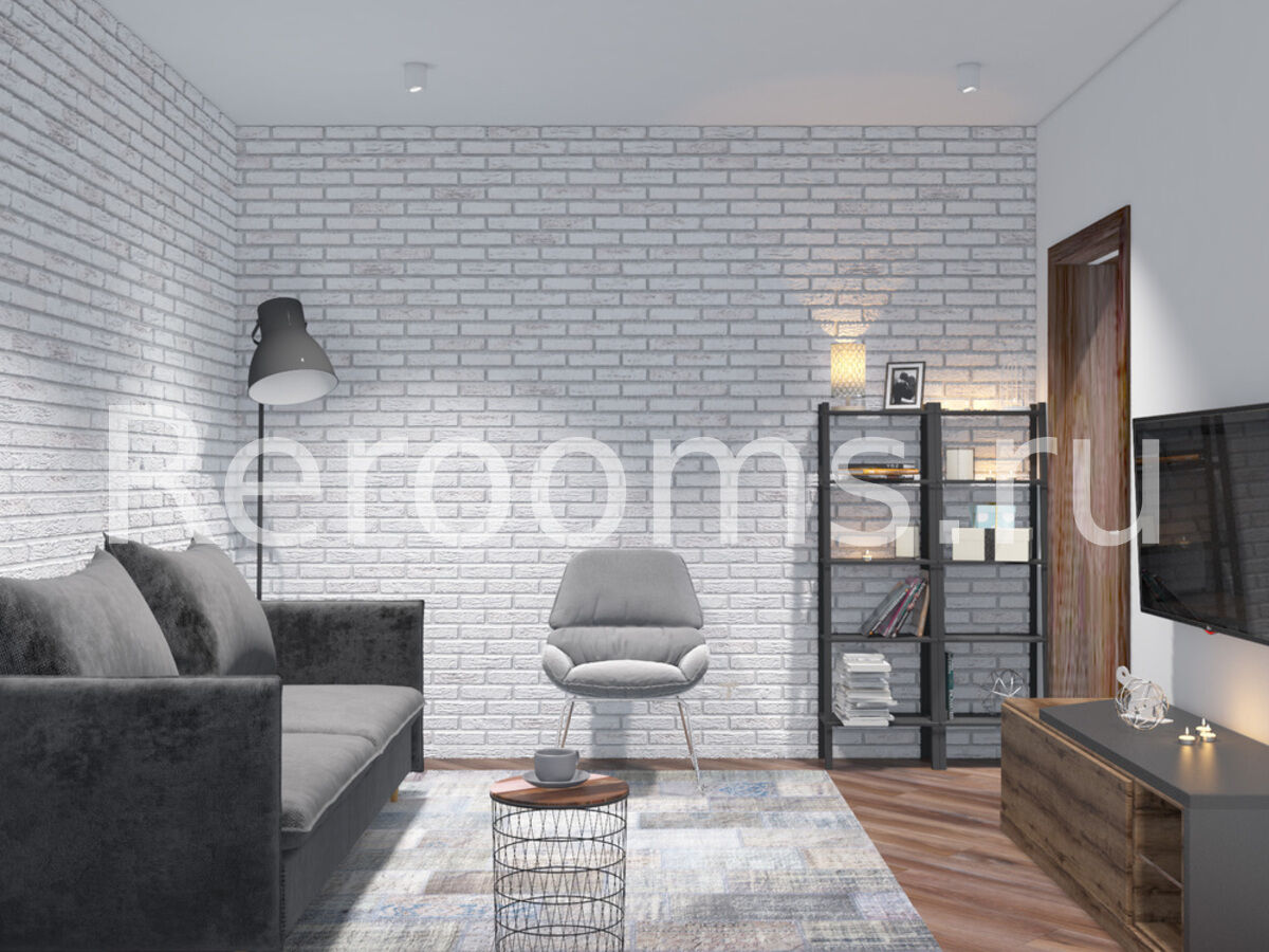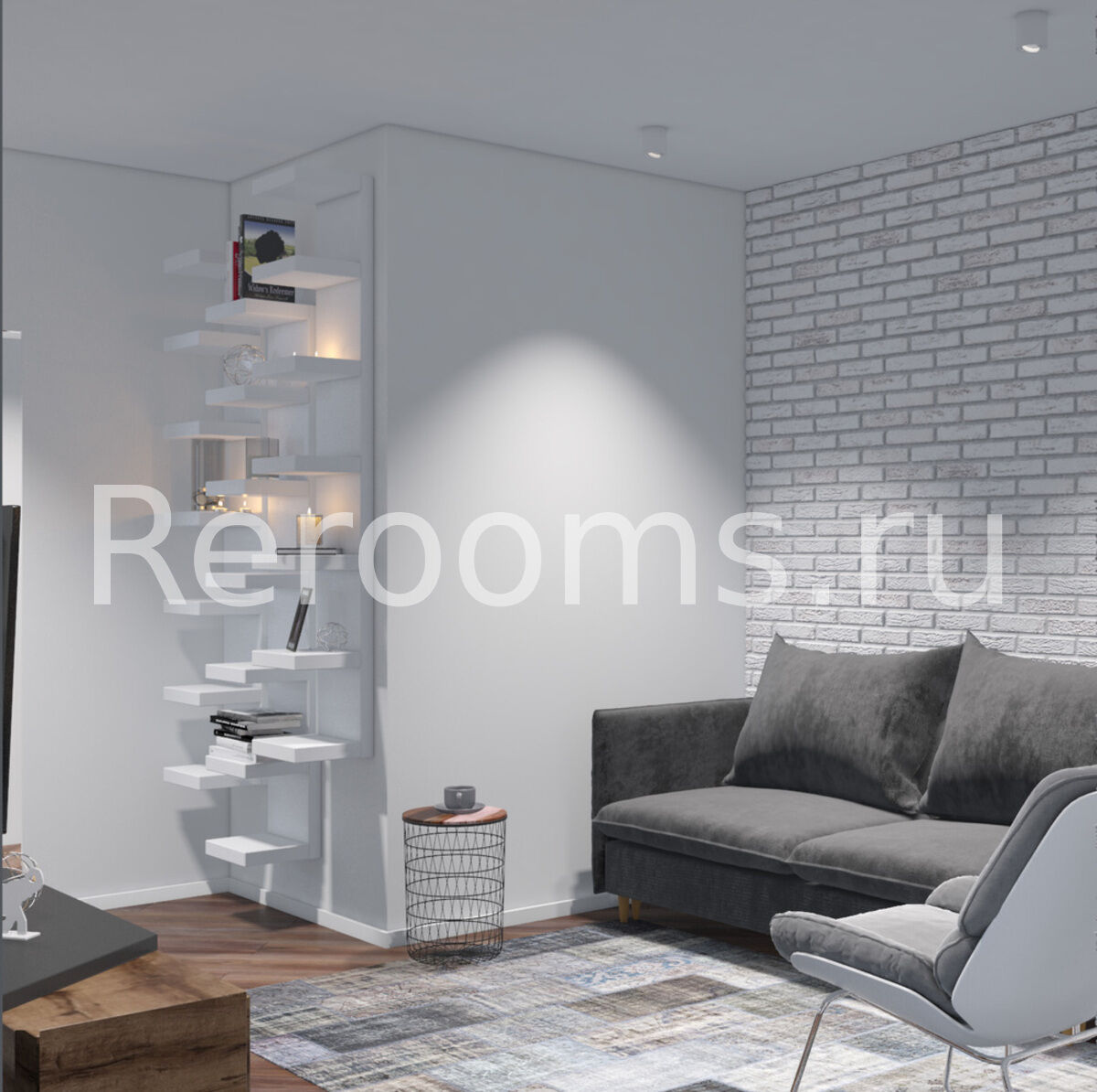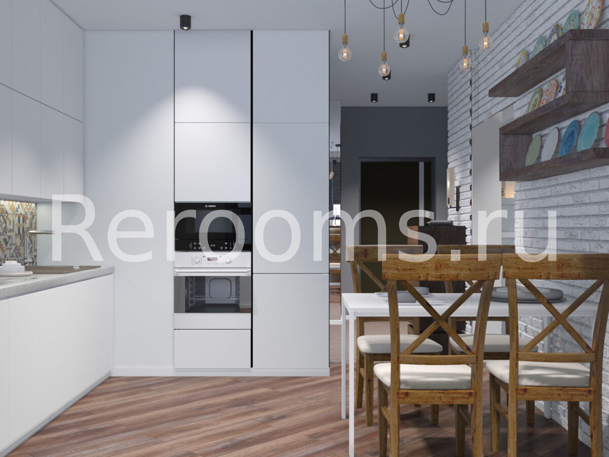 Дизайн-проект квартиры выполнен в современной сканди-стилистике. В качестве основных тонов выбраны типичные для этого направления белый, серый и коричневый. Благодаря белому цвету пространство выглядит более просторным и светлым. В качестве отделочных материалов использовали кладку под кирпич и деревянные панели. Это придало интерьеру особый шарм и модный вид. Особое место в проекте уделено освещению. Дизайнеры решили сочетать несколько вариантов светильников. Помимо основных люстр в помещении установили точечную подсветку.