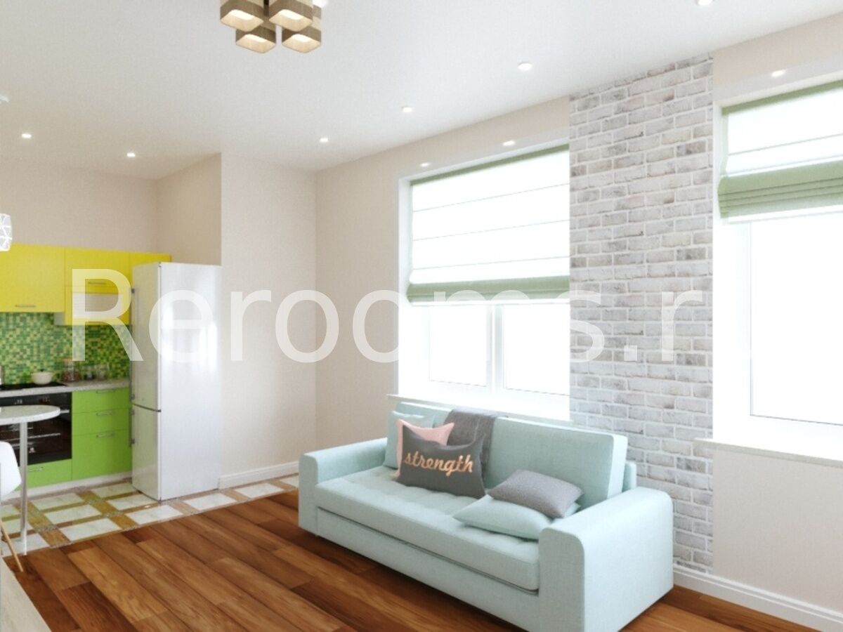 Модный и современный стиль контемпорари идеально подходит как для больших пространств, так и для малогабаритных помещений. Интерьер этой квартиры-студии выполнен в светлой цветовой гамме с яркими акцентами. Пространство разделено на две функциональные зоны - кухни и гостиной. Благодаря минималистичному декору помещение не выглядит перегруженным. Каждый предмет находится на своем месте и соответствует общей стилистической концепции.