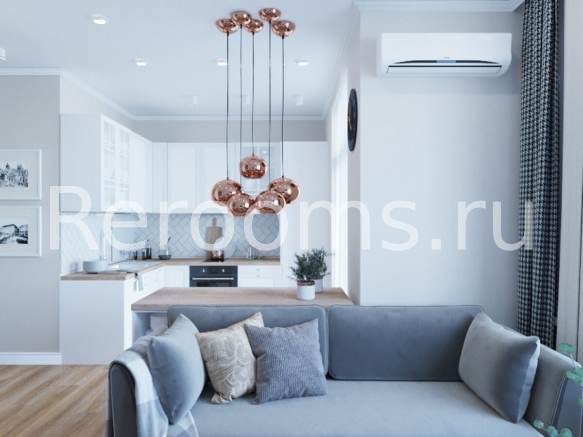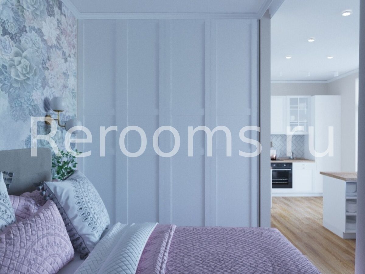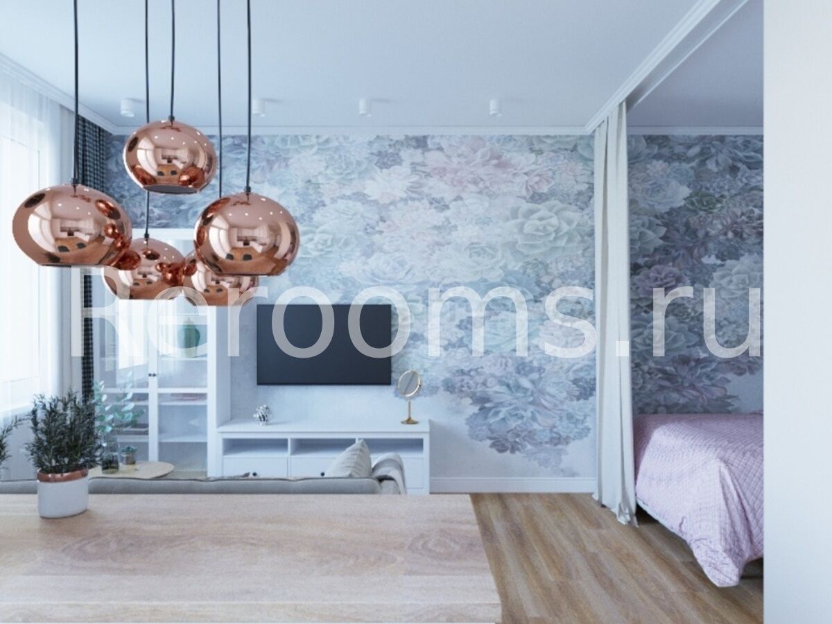 Дизайн-проект этой однокомнатной квартиры выполнен в современном стиле. В интерьере гармонично сочетаются элементы модернизма и прованса, всеми любимого сканди и контемпорари. В цветовом отношении помещение выдержано в светлых тонах. Пространство визуально поделено на несколько функциональных зон - кухни, гостиной и спальни. Последнюю от основного помещения отделили при помощи шкафа и занавеса, получив таким образом полноценное место для отдыха. Особое внимание в квартире привлекает стена с цветочным декором.