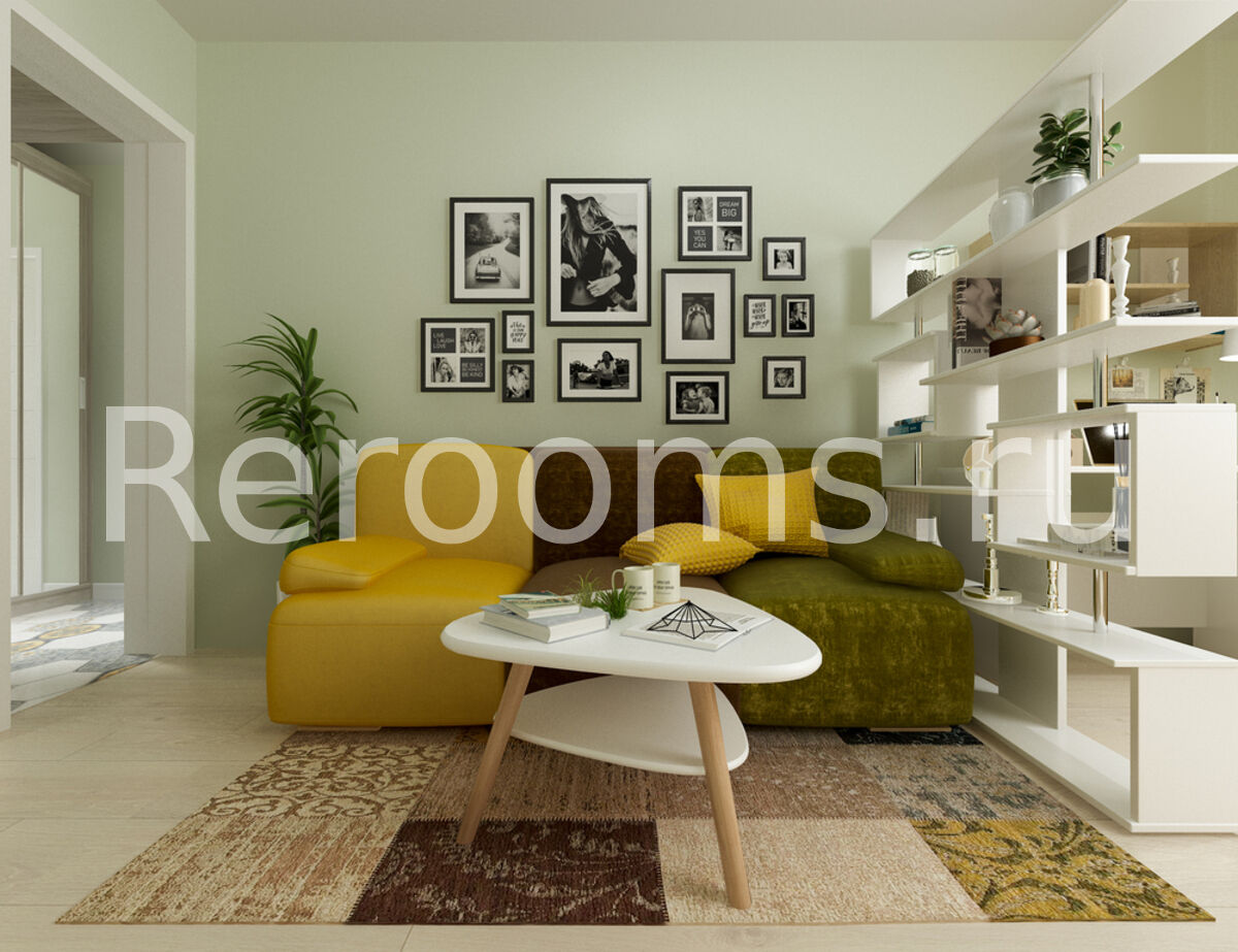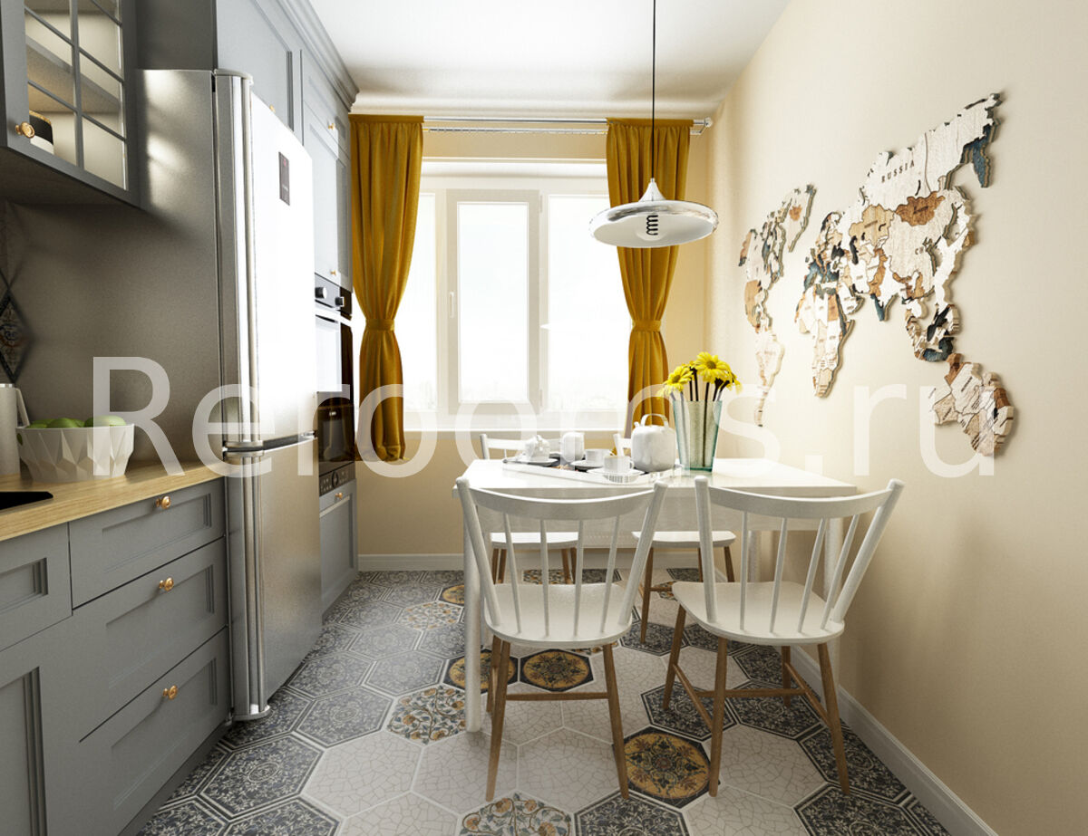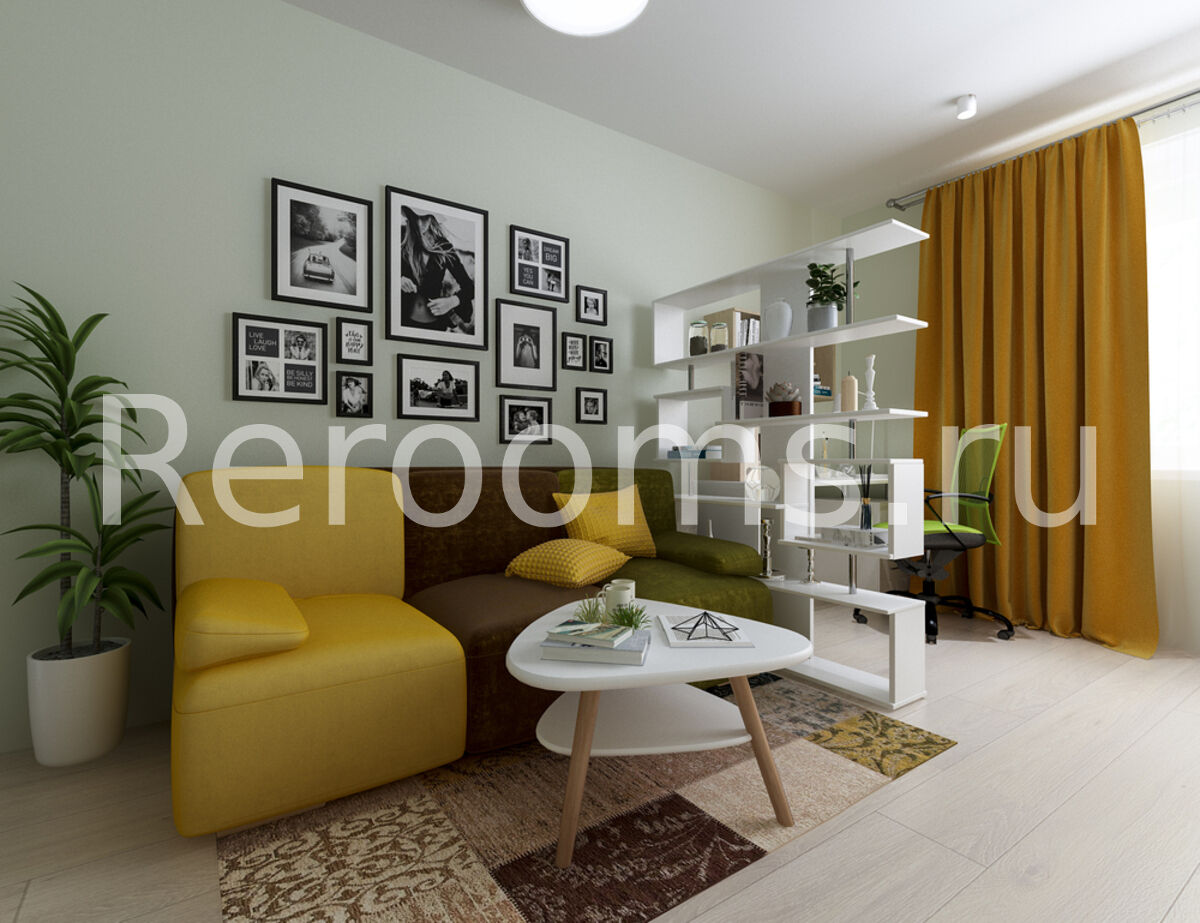 Современный дизайн этой однокомнатной квартиры привлекает своей универсальностью и функционализмом. Жилая комната поделена на три зоны. Гостиную от рабочего кабинета отделили шкафом с открытыми полками. Такой прием позволил визуально разграничить пространство, не перегружая его. Конфигурация комнаты также позволила разместить в ней полноценную кровать и организовать таким образом мини-спальню. На кухне мебельный гарнитур расположили вдоль двух стен, оставив место для столовой зоны.
