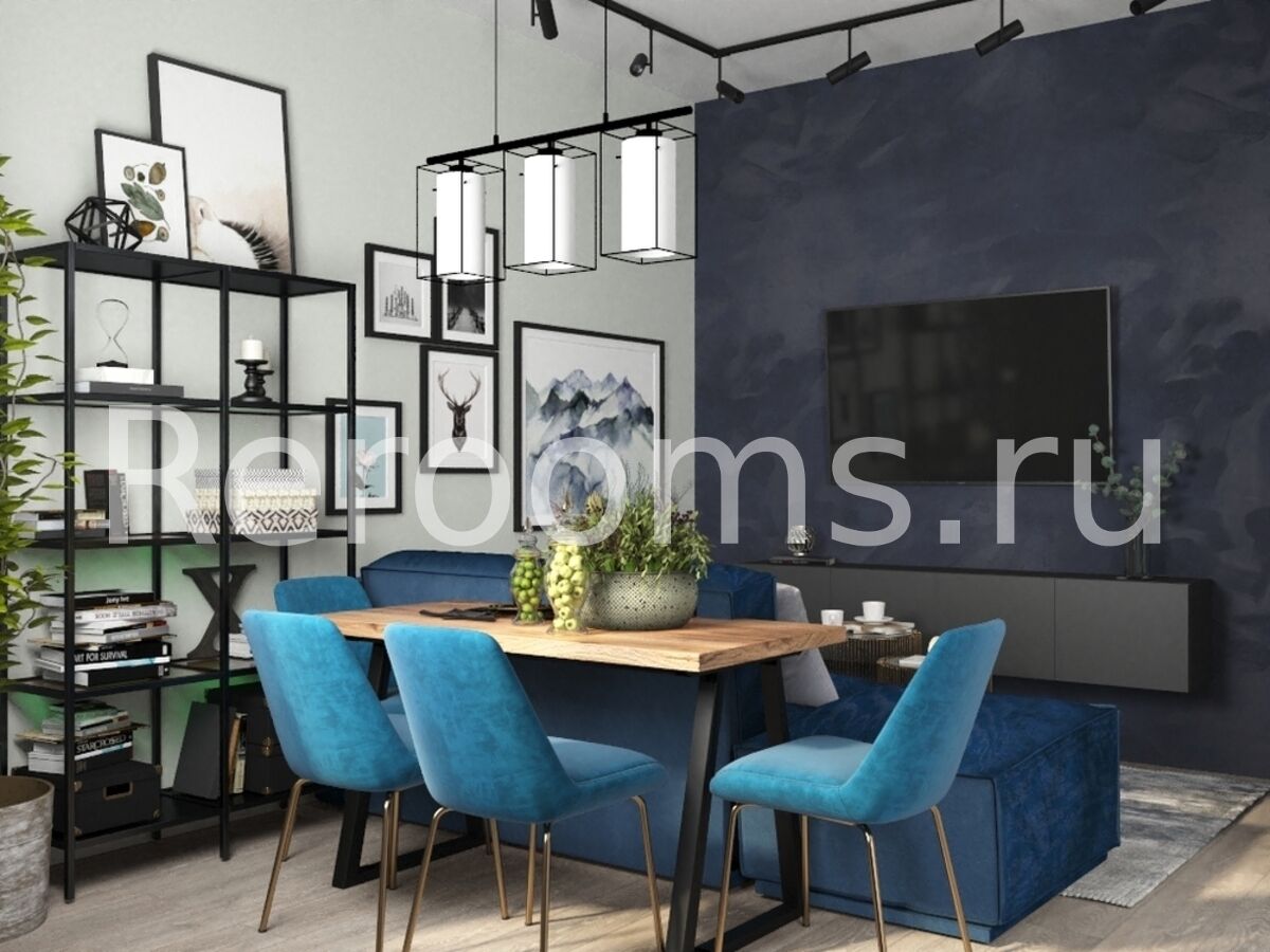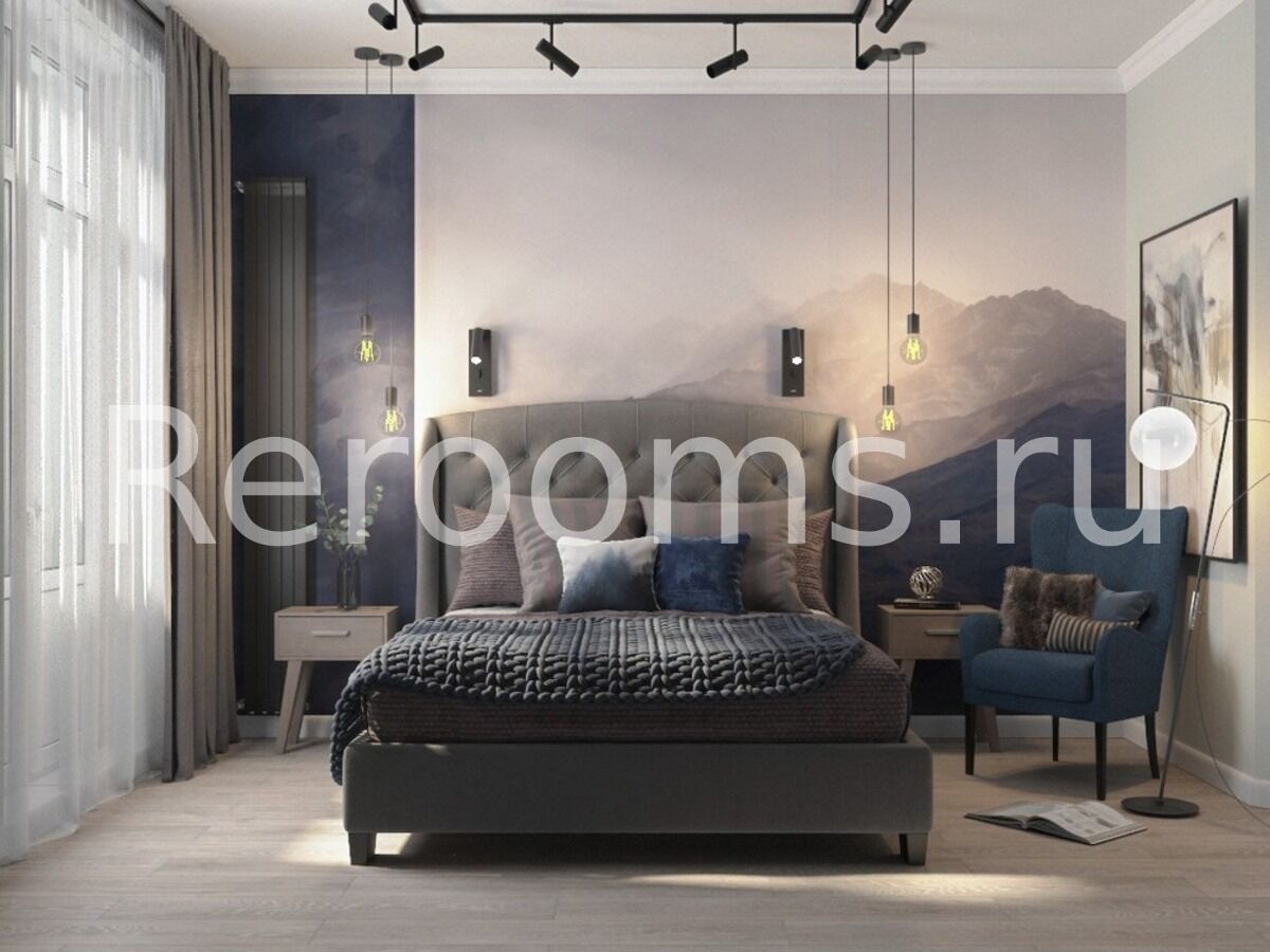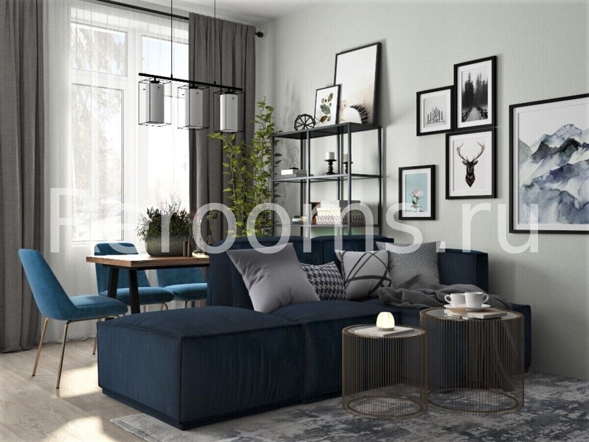 Разрабатывая проект этой квартиры, дизайнер руководствовалась основными принципами скандинавского стиля и стиля лофт, в результате чего получился современный, просторный и функциональный интерьер. В качестве основных тонов отделки и декора выбрали различные оттенки серого, графитовый и цвет светлого дерева. Пространство кухни и гостиной разделили стеной с открытым проемом, что визуально сделало эти зоны более приватными, но не изолированными друг от друга. В спальне возвели конструкцию полузакрытого подиума с подсветкой.