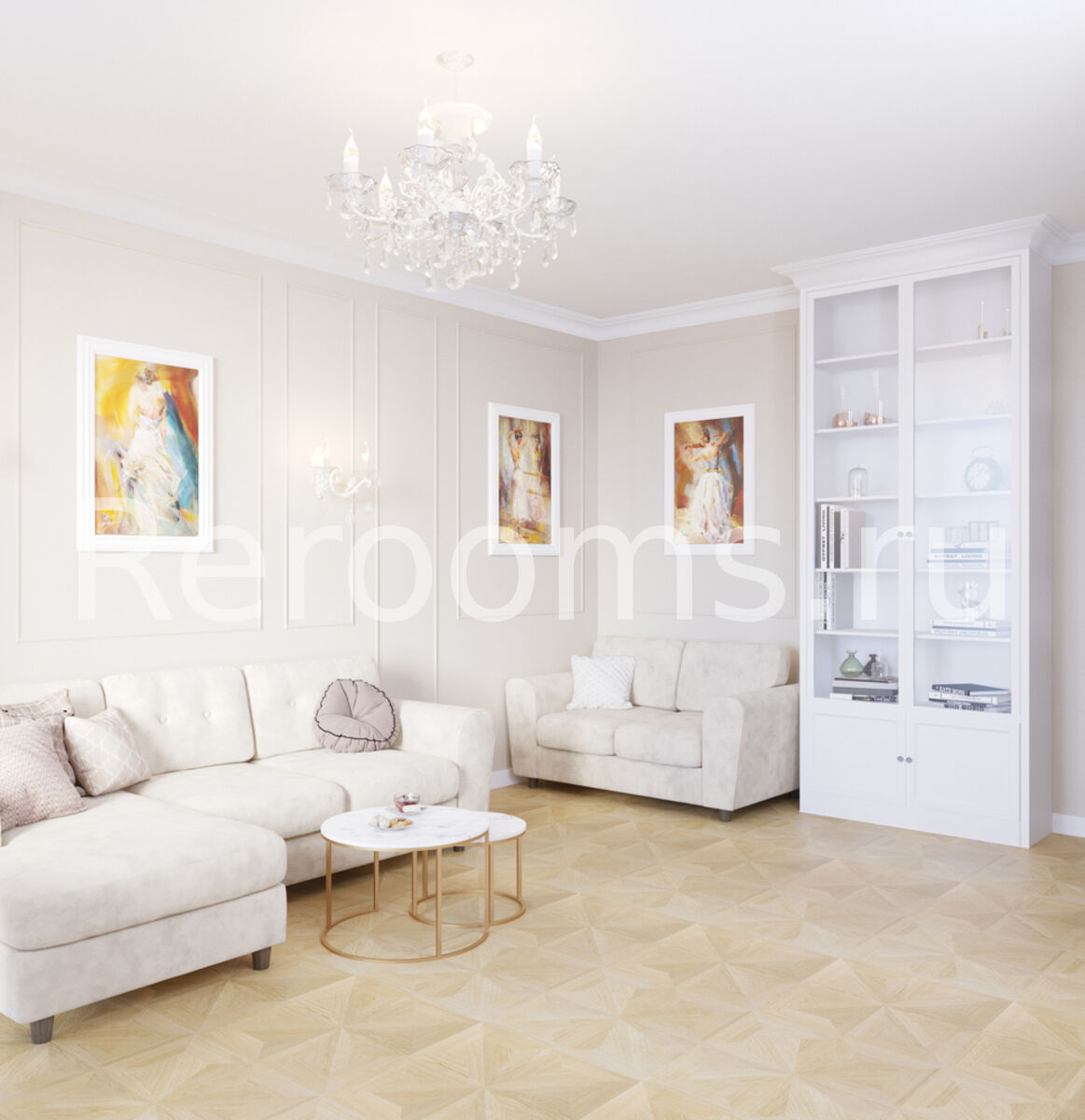 Фото № 2: Дизайн-проект однокомнатной квартиры 55.13  м² Стиль Современная классика для ЖК Московский