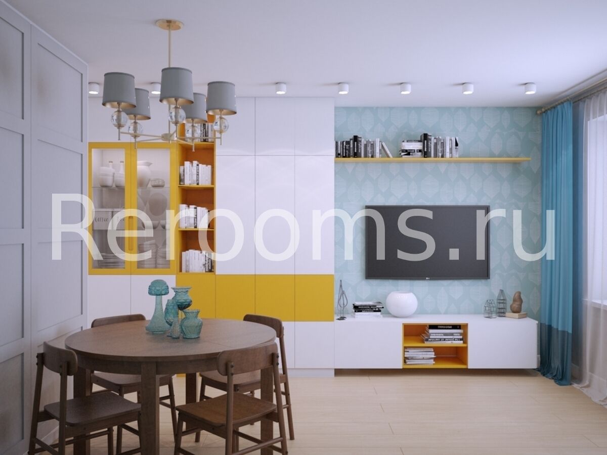 Дизайн-проект этой однокомнатной квартиры выполнен в скандинавском стиле. В интерьере все достаточно просто, лаконично и при этом изысканно. Здесь преобладают светлые тона, удачно разбавленные яркими акцентами в отделке стен, а также мебели и текстиля. Наличие натуральных материалов в оформлении создает в помещении особую атмосферу тепла и уюта.