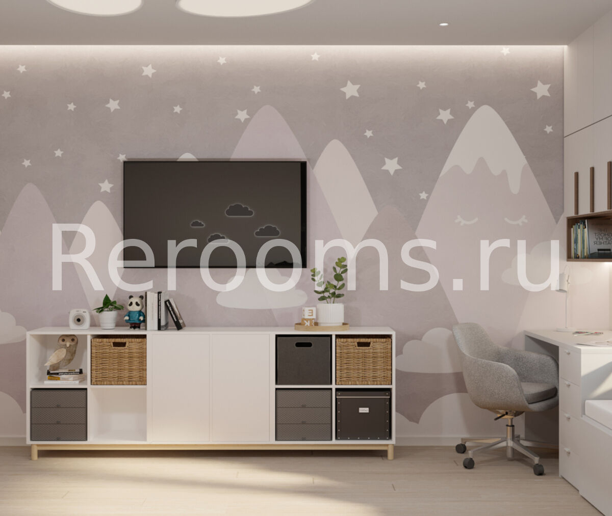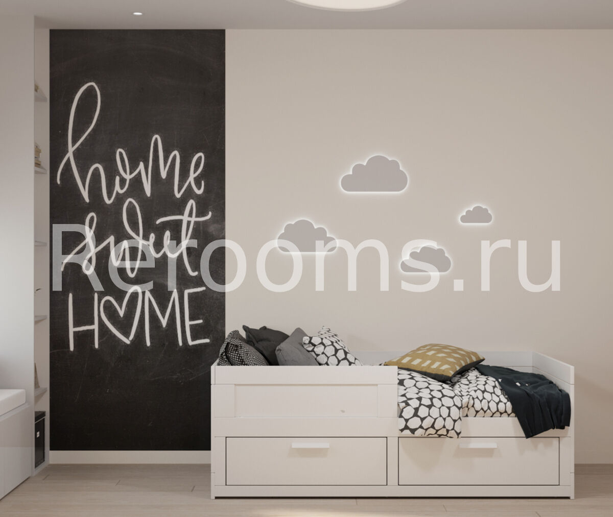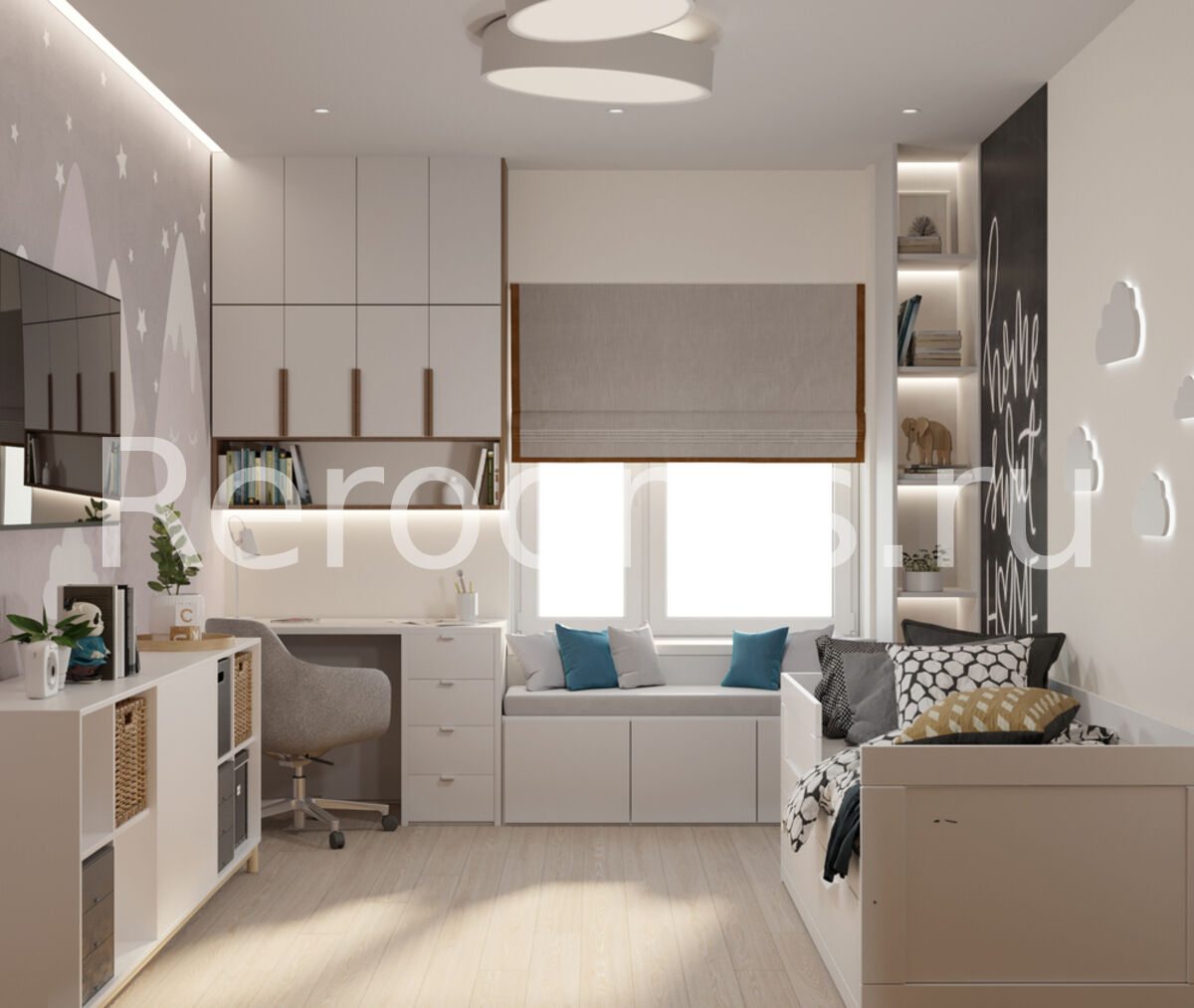 Проект двухкомнатной квартиры выполнен в модном стиле модернизм. Геометрия небольшого пространства четко разделена. Одна из комнат совмещает в себе две функциональные зоны - гостиной и кухни. Зону приготовления пищи отделили от основного помещения мебельным гарнитуром. Благодаря такому дизайнерскому приему оба пространство выглядит гармонично и целостно. Детская комната получилась очень функциональной и современной. Тон в квартире задают спокойные цвета - белый, серый и различные оттенки бежевого.