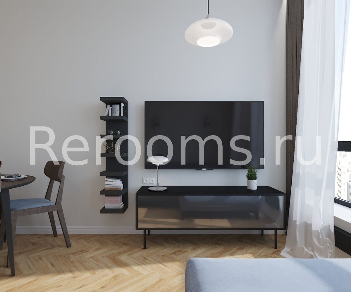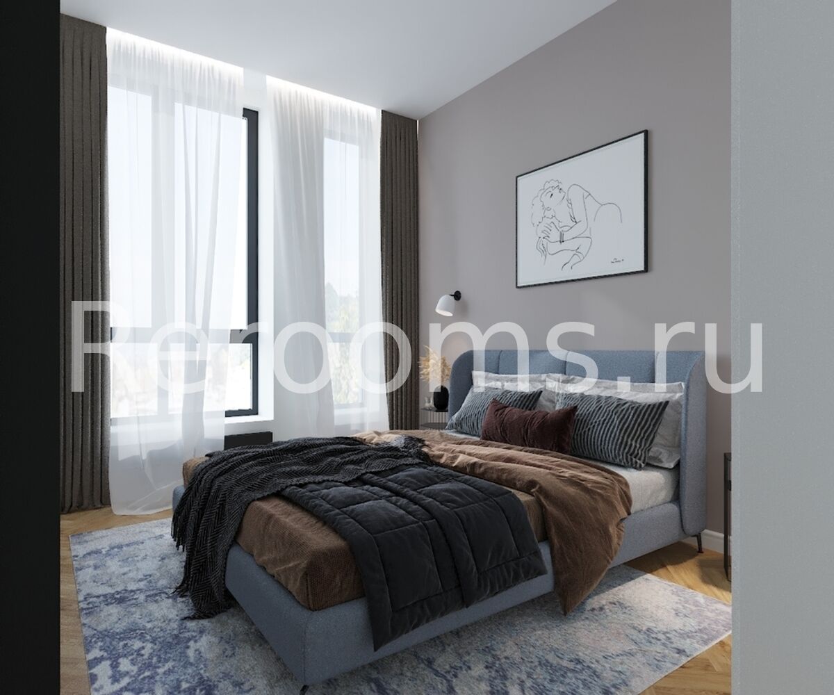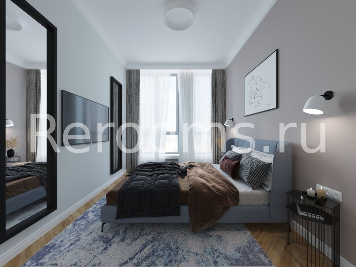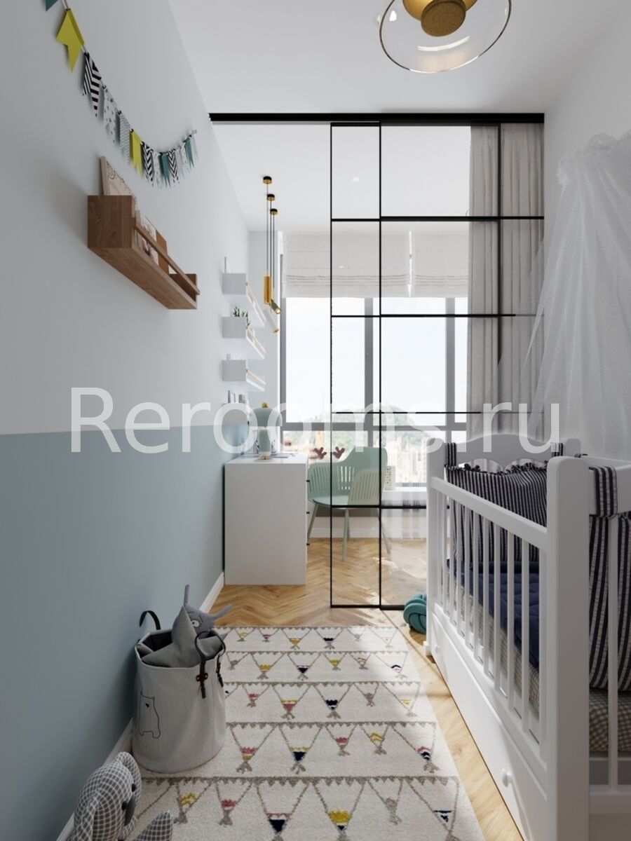 Дизайн-проект этой двухкомнатной квартиры выполнен в современном стиле. В интерьере гармонично сочетаются элементы модернизма и всеми любимого сканди. В цветовом отношении помещение выдержано в серых тонах с яркими цветовыми акцентами. Особое внимание привлекает отделка стен с использованием декоративных принтов. Они придают пространству дополнительную глубину и объем.
