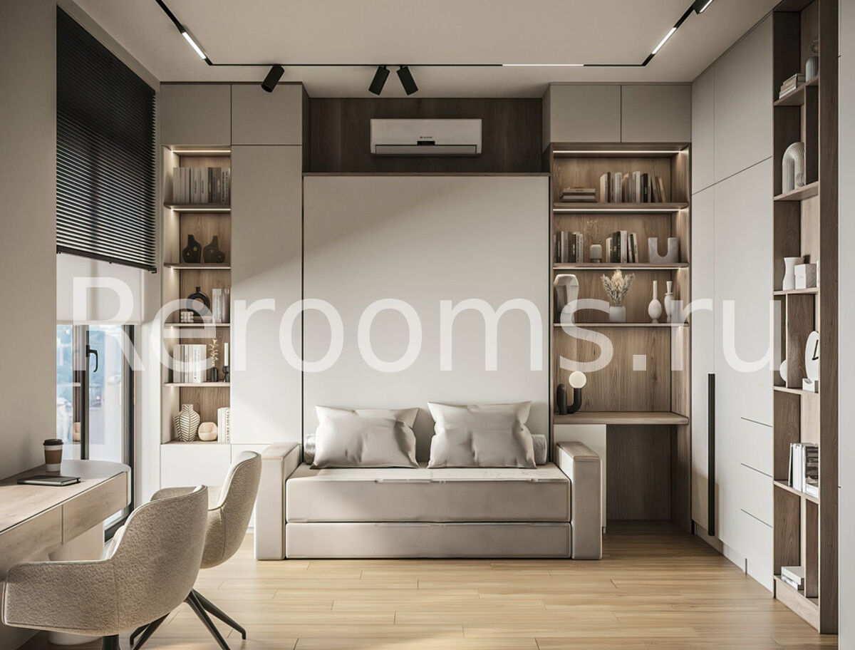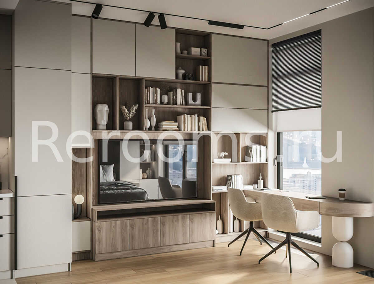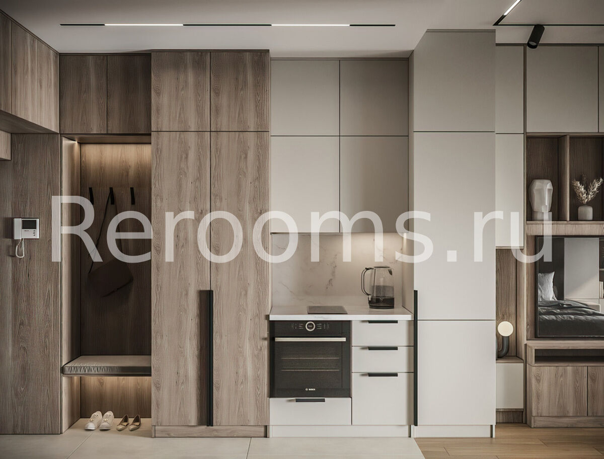 За основу оформления этой небольшой квартиры-студии взят современный стиль. Деревянные фактуры, гармоничные цвета, высококачественные отделочные материалы, интересный световой сценарий - все это помогло создать комфортный и эстетически привлекательный интерьер.