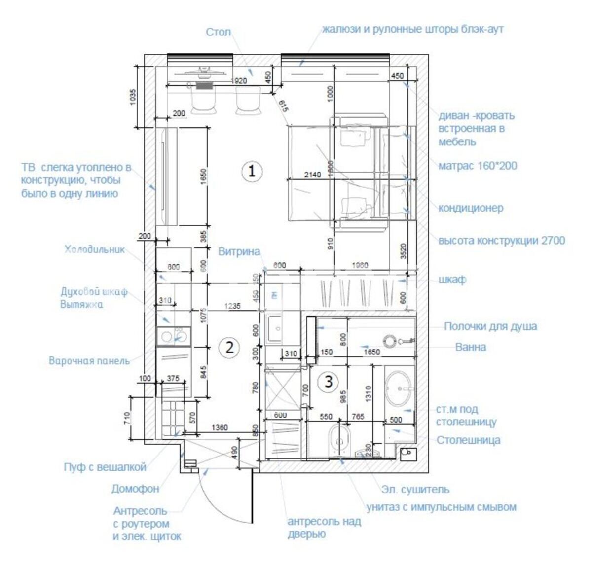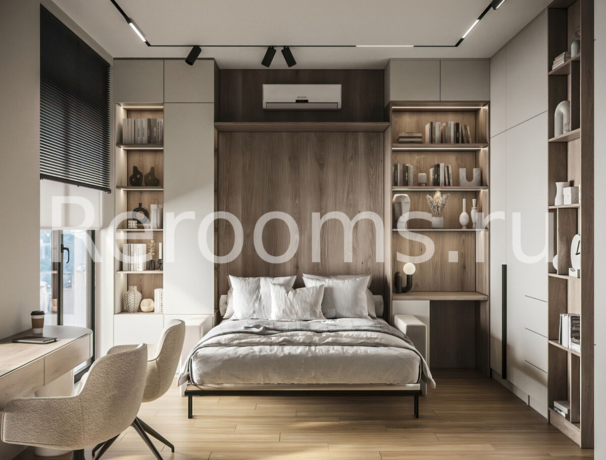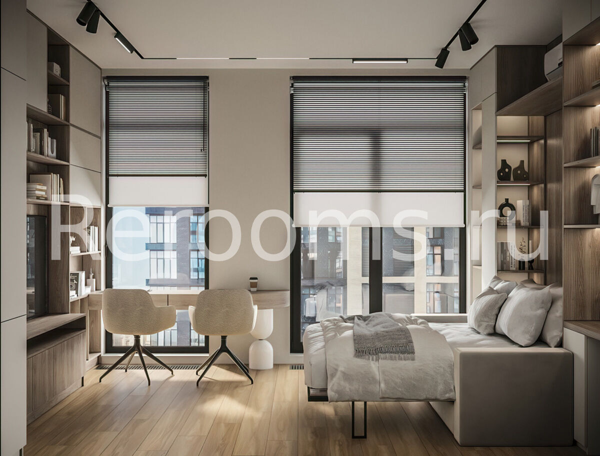 За основу оформления этой небольшой квартиры-студии взят современный стиль. Деревянные фактуры, гармоничные цвета, высококачественные отделочные материалы, интересный световой сценарий - все это помогло создать комфортный и эстетически привлекательный интерьер.