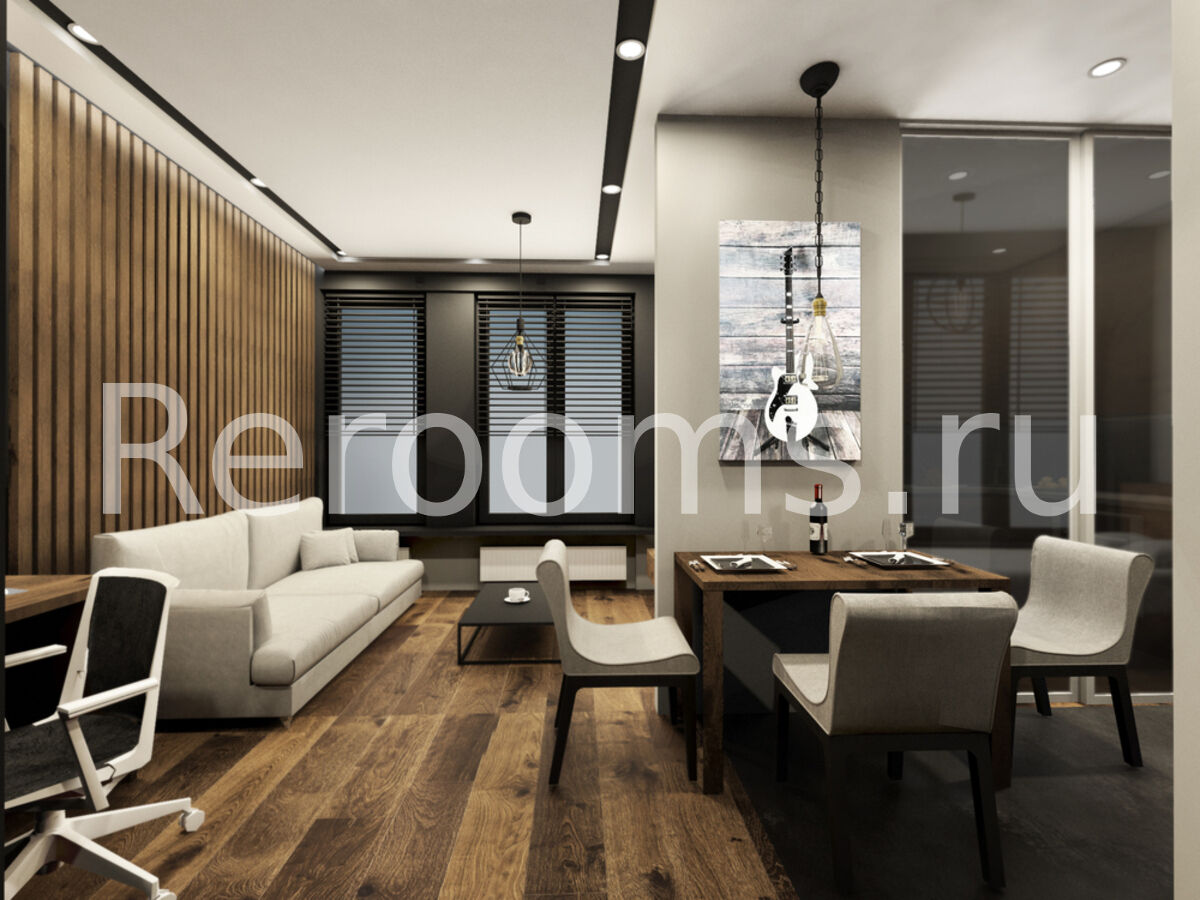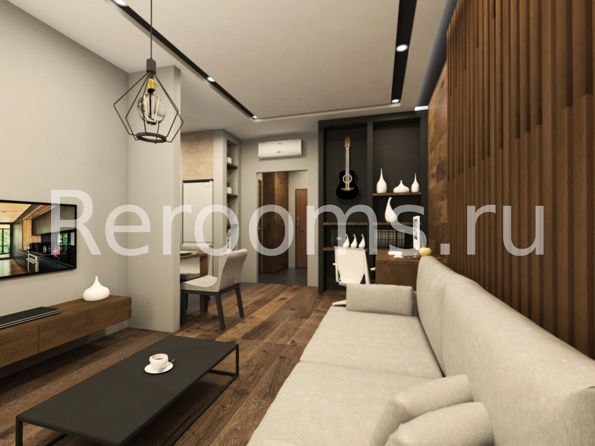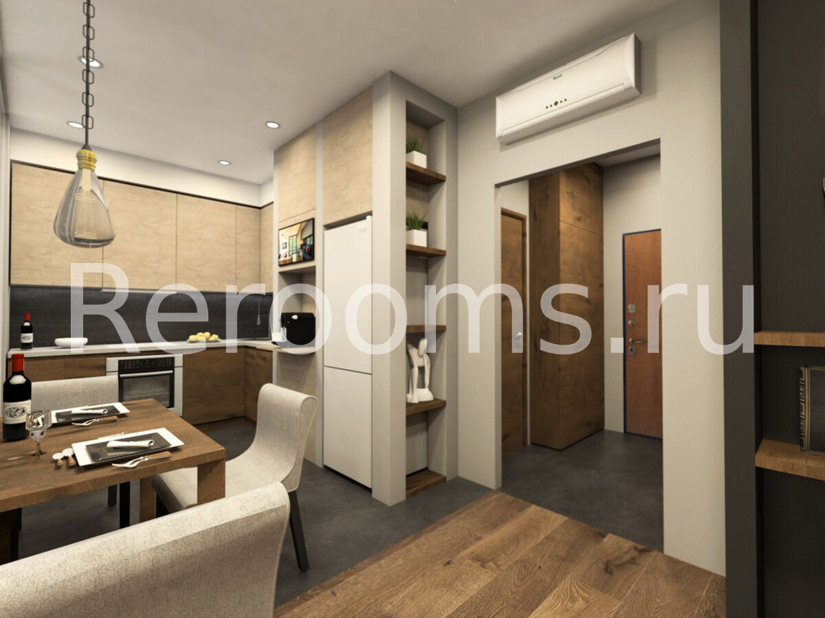 Стильный интерьер этой однокомнатной квартиры решен в различных оттенках коричневого и бежевого цветов. Использование схожих материалов в отделке пола и стен делает все пространство необычайно цельным и гармоничным. Обилие деревянных фактур придает интерьеру теплоту и определенный уют. Рациональное зонирование помогает разместить на небольшой площади все необходимые функциональные зоны.