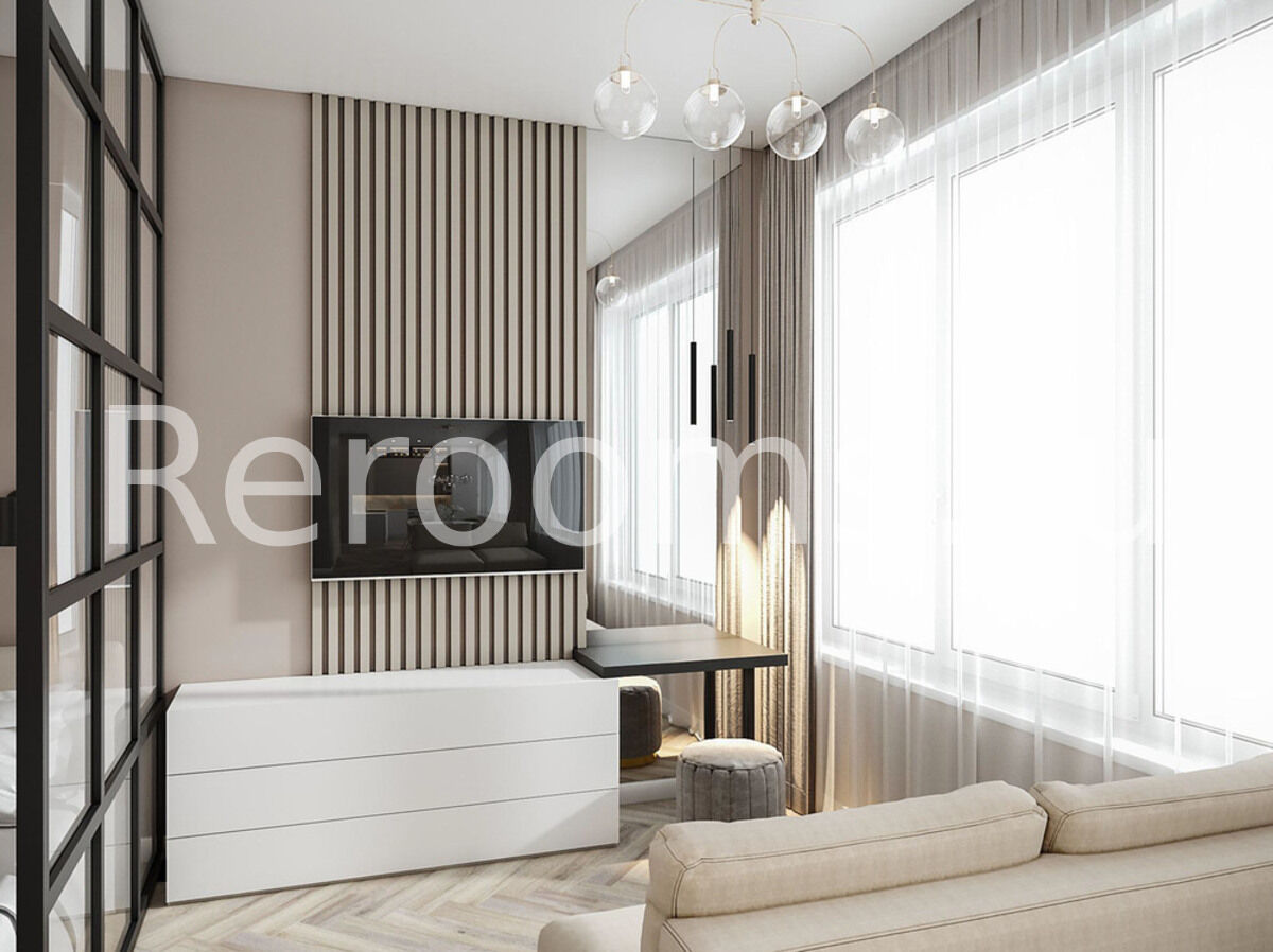 Дизайн-проект однокомнатной квартиры выполнен в стиле модернизм. Интересные архитектурные решения, обилие разнообразных текстур, современные элементы декора в этом интерьере смотрятся необычайно гармонично и целостно. Разноплановое освещение придает пространству индивидуальный характер, а гармоничное сочетание цветов делает его стильным и уникальным.
