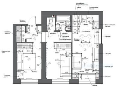 Интерьер этой квартиры выглядит современно и элегантно: гармоничная цветовая палитра с яркими акцентами, оригинальные дизайнерские решения и эргономичная мебель создают цельный образ, полностью соответствующий современной стилистической концепции модернизма.