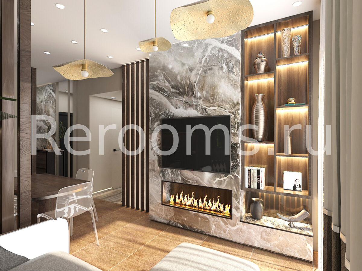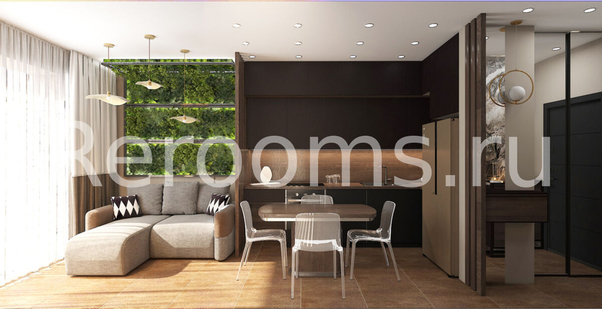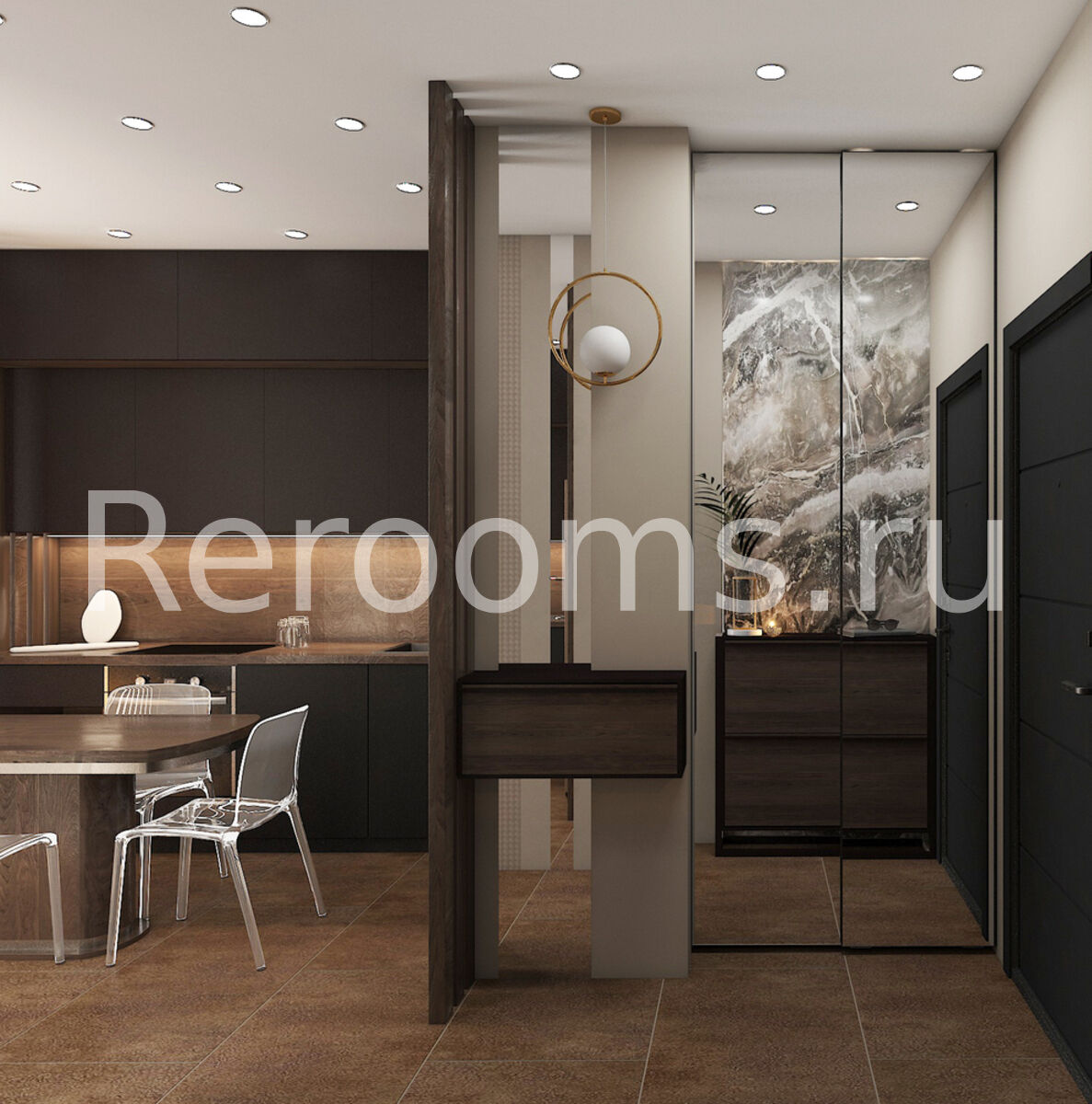 Дизайн этой трехкомнатной квартиры выдержан в модном современном стиле. Цветовая гамма с использованием различных оттенков коричневого и серого цветов делает помещение ультрамодным и красивым. Интересная архитектура пространства, микс различных материалов и оригинальный световой сценарий - все это работает на общую концепцию интерьера. Каждое помещение этой квартиры не только эстетически привлекательно, но и функционально.
