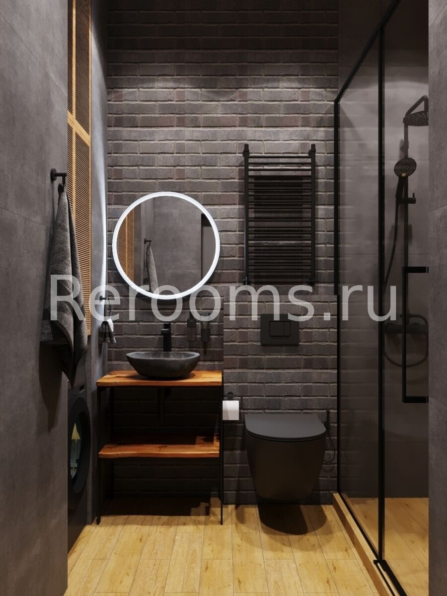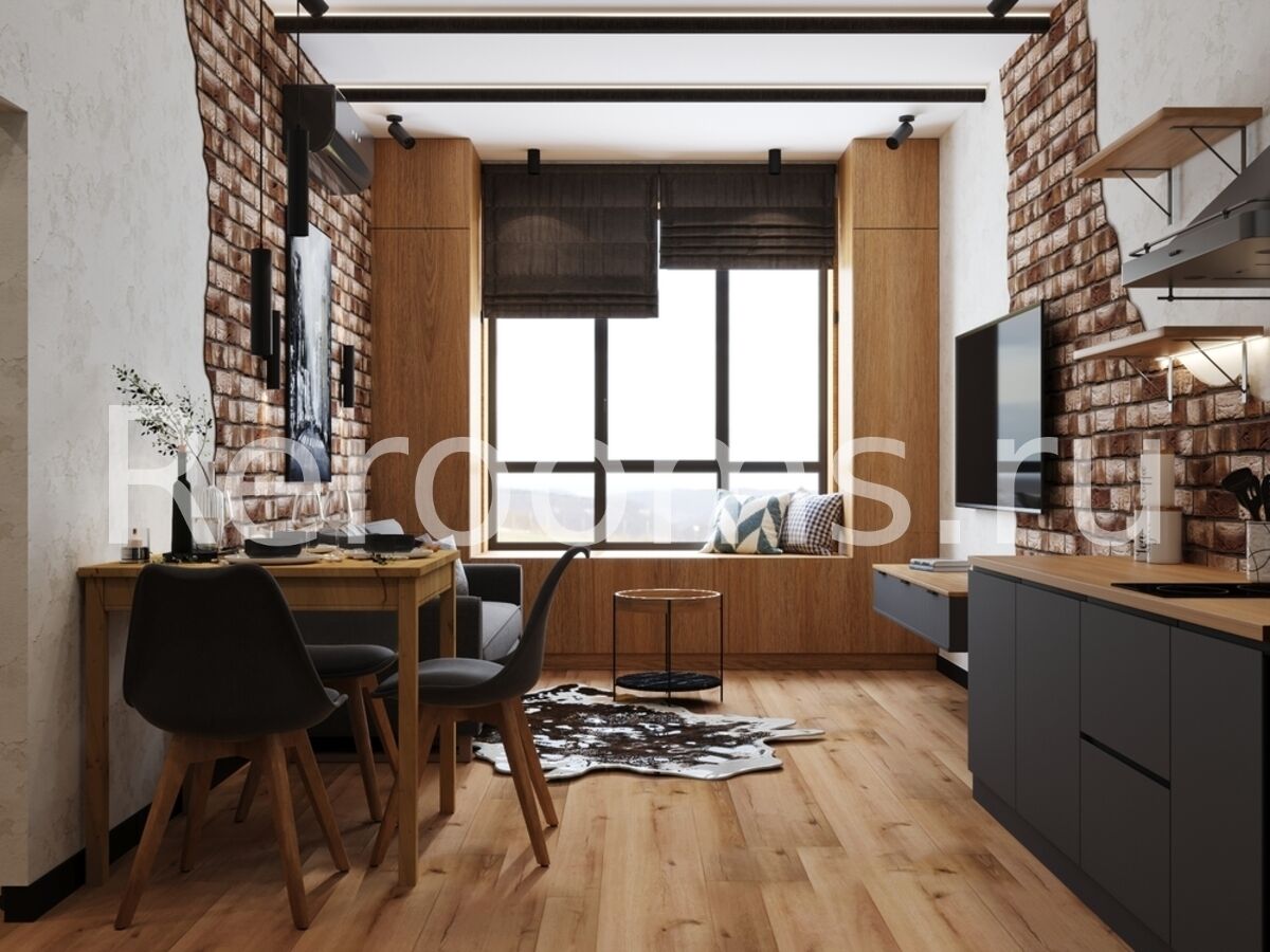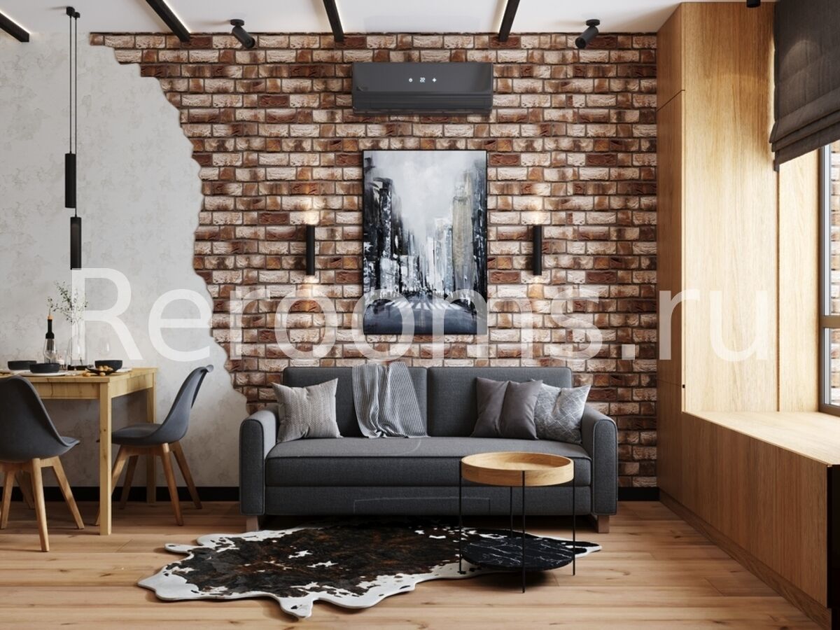 Интерьер этой однокомнатной квартиры выполнен в стиле лофт. Кирпичная кладка, современные индустриальные светильники, а также металлические элементы декора придают помещению брутальный дух фабричного пространства. В интерьере преобладают характерные для лофтовой стилистики цвета, такие как серый и терракотовый. Пространство квартиры функционально и четко соответствует выбранной концепции.