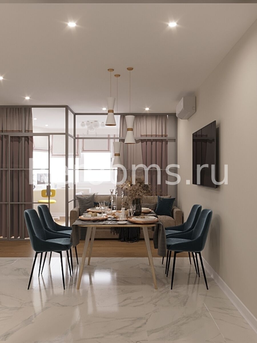 Дизайн этой квартиры выдержан в современном стиле. Цветовая гамма с использованием серых, белых, голубых тонов делает интерьер ультрамодным и красивым. Интересная архитектура пространства, комбинация различных материалов и оригинальный световой сценарий - все это работает на поддержание концепции современного дизайна.