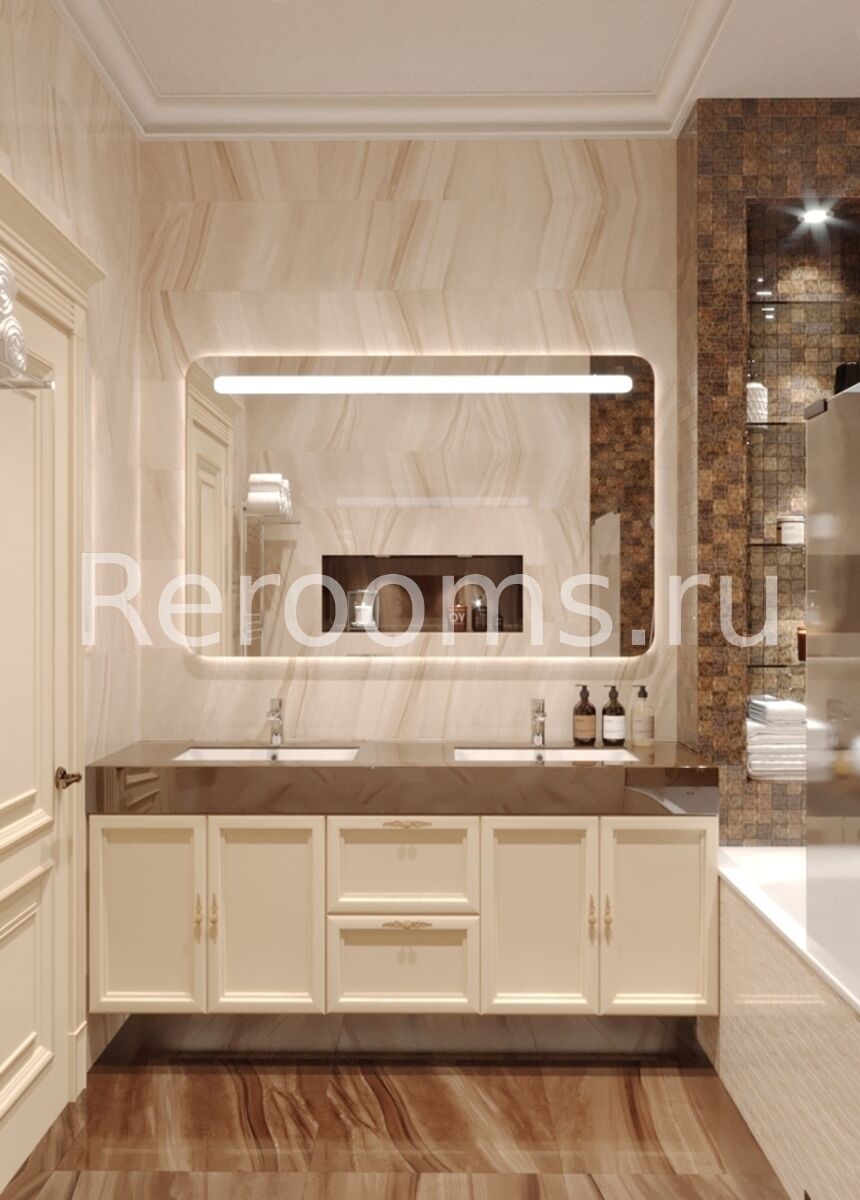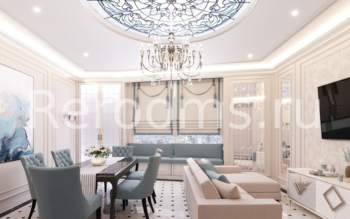 Элегантная, функциональная, изящная и комфортная Американская классика легла в основу оформления этого красивого интерьера. Изысканная гамма, построенная на сочетании бежевого, золотистого, нежно-бирюзового и лилового цветов создает в помещении атмосферу легкости и свободы. Разнообразие архитектурных форм и отделочных материалов придают интерьеру неповторимый шарм и подчеркивают его респектабельность. А сложный световой сценарий акцентирует на утонченности и создает в помещении особый уют.