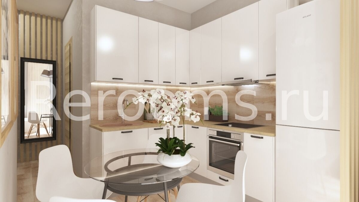 Фото № 6: Дизайн-проект однокомнатной квартиры 33.87  м² Стиль Модернизм для ЖК Водный