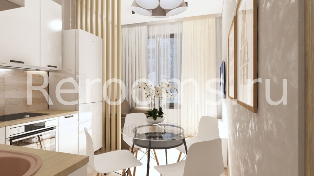 Фото № 3: Дизайн-проект однокомнатной квартиры 33.87  м² Стиль Модернизм для ЖК Водный