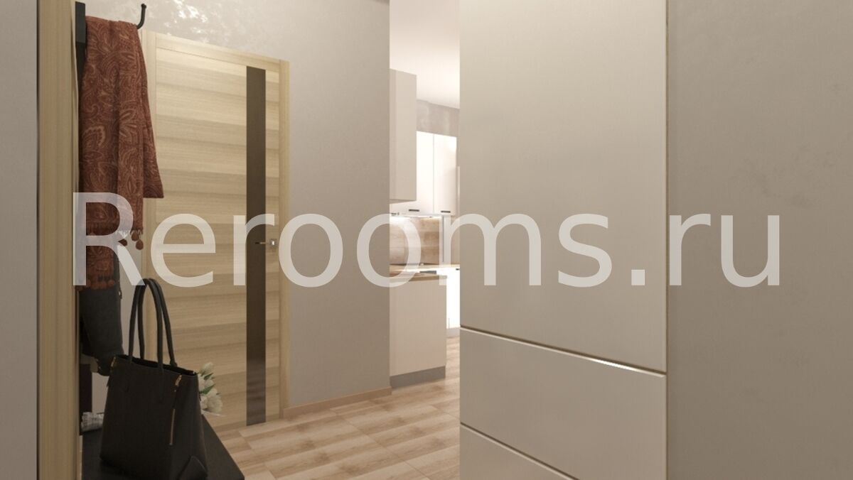 Фото № 2: Дизайн-проект однокомнатной квартиры 33.87  м² Стиль Модернизм для ЖК Водный