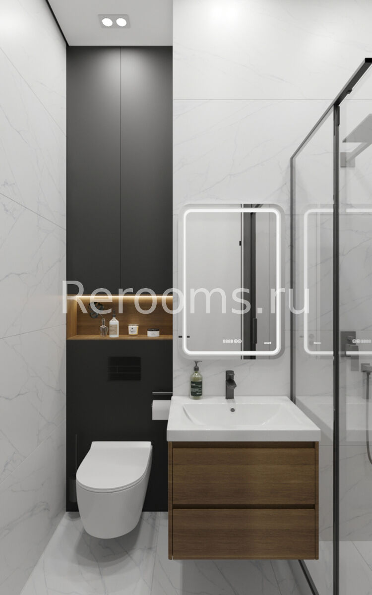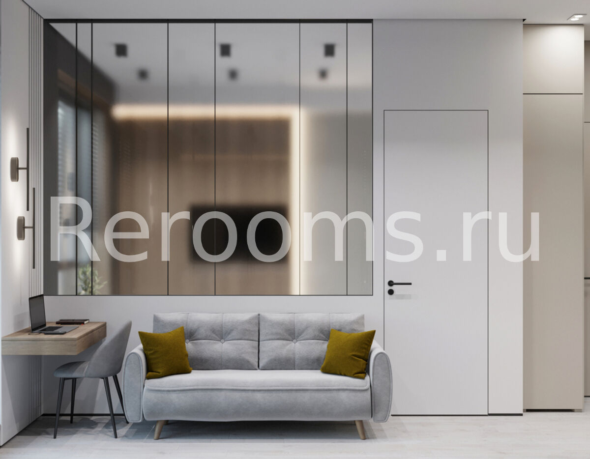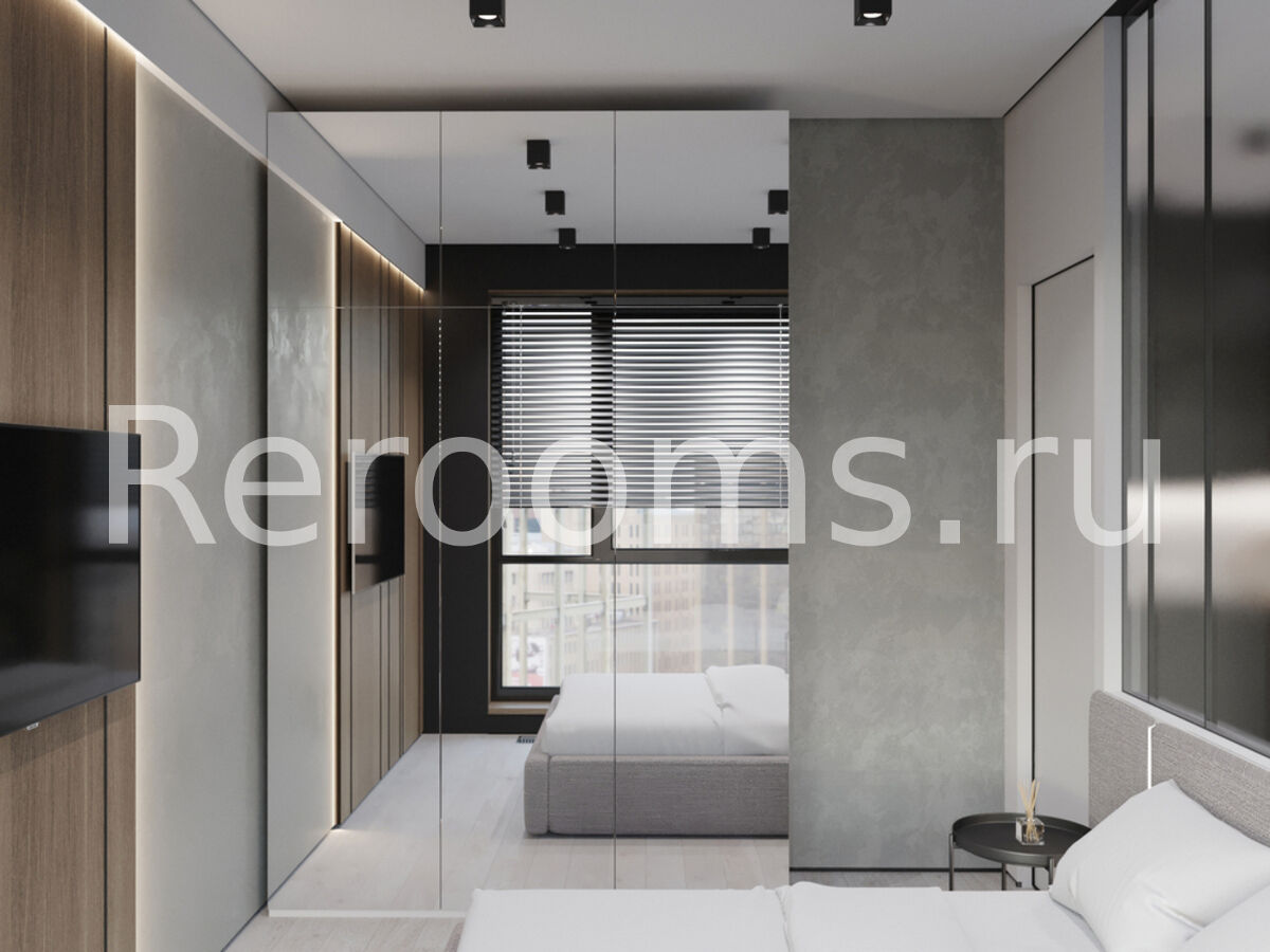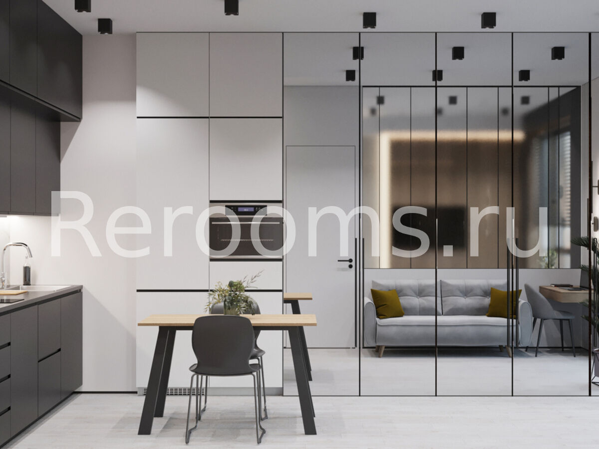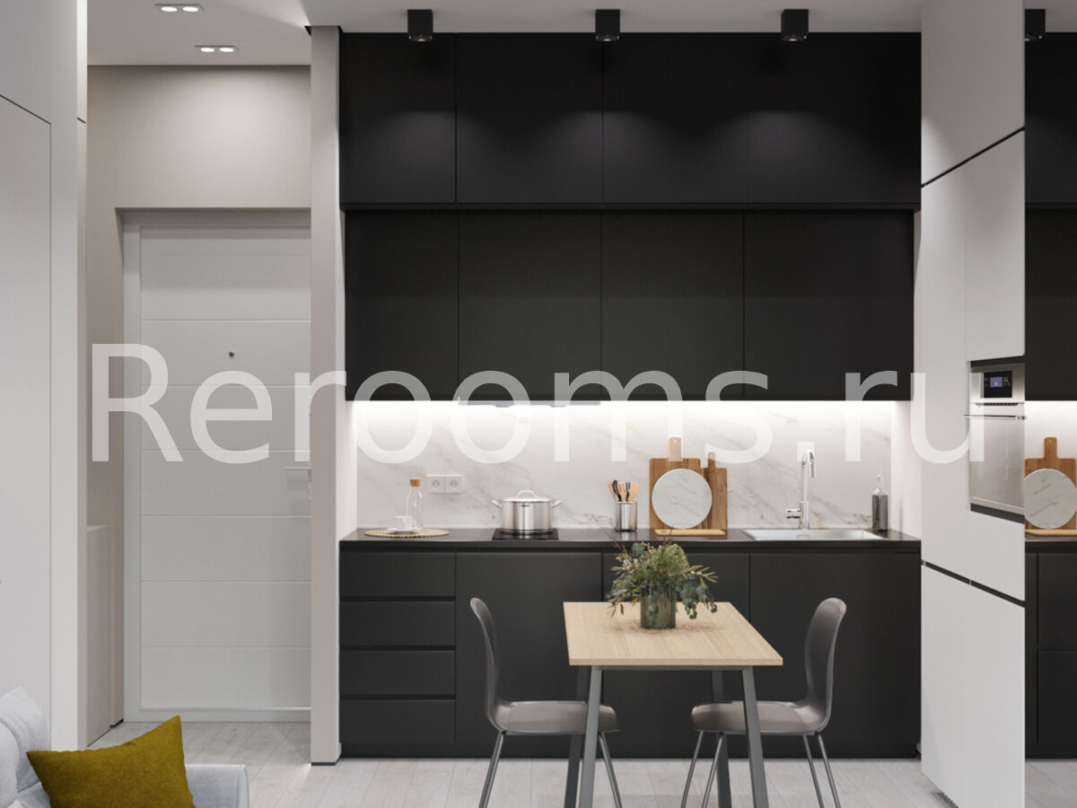 Дизайн этой однокомнатной квартиры выдержан в современном стиле. Интересная архитектура пространства, сдержанная цветовая гамма, комбинация различных материалов и оригинальный световой сценарий - все это работает на общую концепцию интерьера.