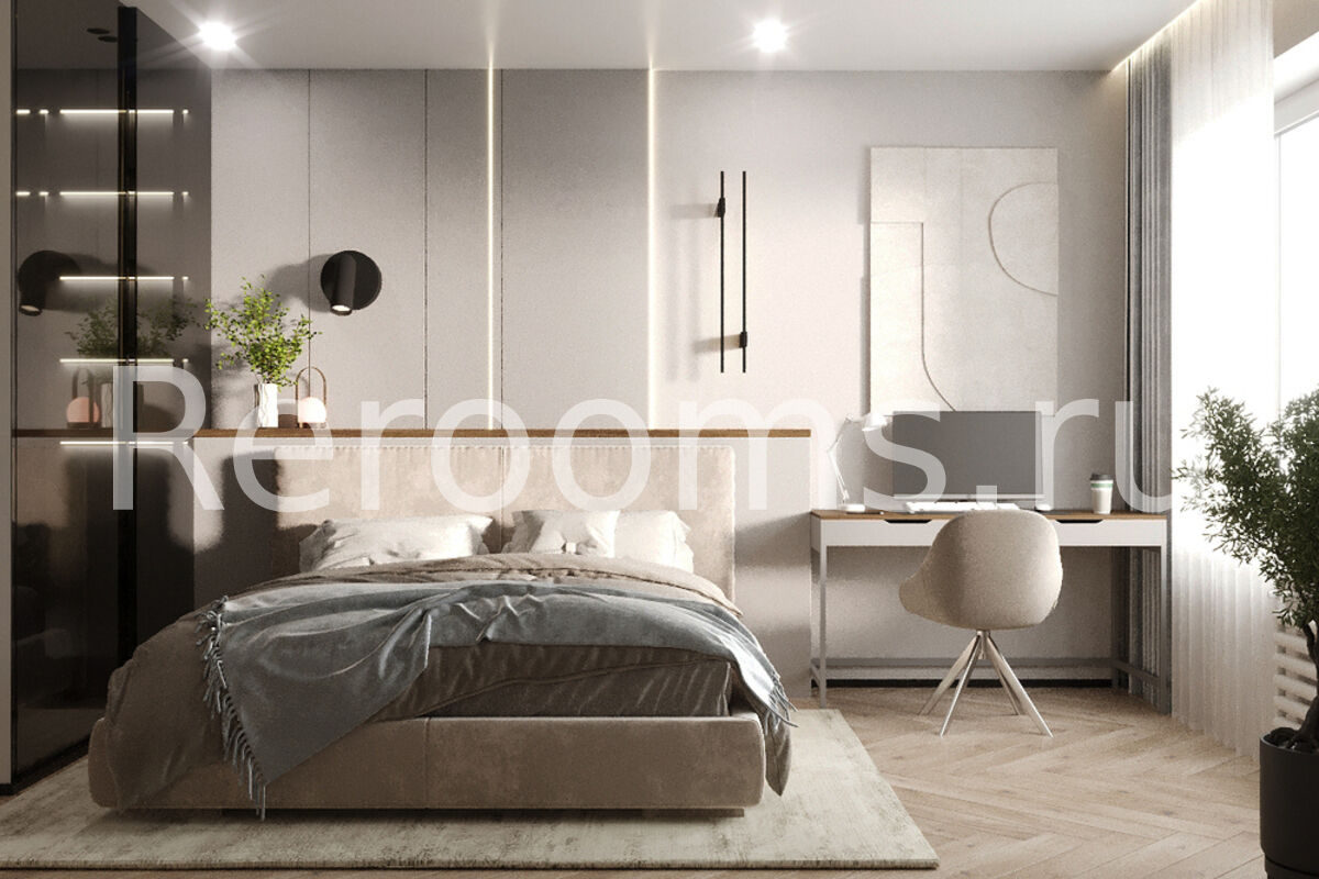 Модернизм в интерьере — это сочетание современного дизайна, практичности и эстетики. Четкие линии, тщательно продуманные детали и сдержанная цветовая гамма формируют актуальное и элегантное пространство в этой квартире. Эргономичная мебель и оригинальные дизайнерские решения подчеркивают стиль и создают уютную обстановку для повседневной жизни.