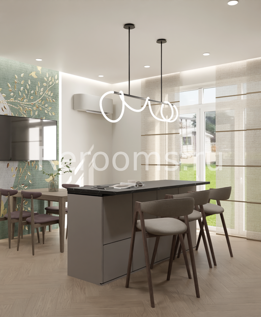 Дизайн этого дома выдержан в современном стиле. Цветовая гамма с использованием сдержанных натуральных тонов делает интерьер ультрамодным и красивым. Интересная архитектура пространства, комбинация различных материалов и оригинальный световой сценарий - все это работает на поддержание концепции современного дизайна.