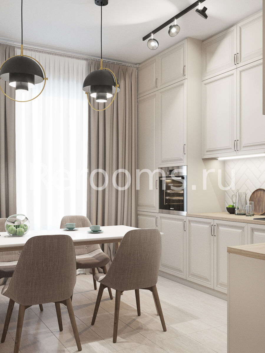 Проект двухкомнатной квартиры получился очень выдержанным и гармоничным. Светлая цветовая гамма с использованием бежевых, белых и приглушенных розовых оттенков делает пространство спокойным и уютным. Помещение кухни функционально и красиво. Минималистичный гарнитур со встроенной техникой отличается эргономичностью. Спальня и детская выглядят очень изящно. Здесь нет ничего лишнего и каждый предмет несет не только функциональную, но и декоративную нагрузку.