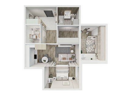 Дизайн-проект евро трехкомнатной квартиры 55.8 м² Современный стиль для ЖК "Яблочкова"