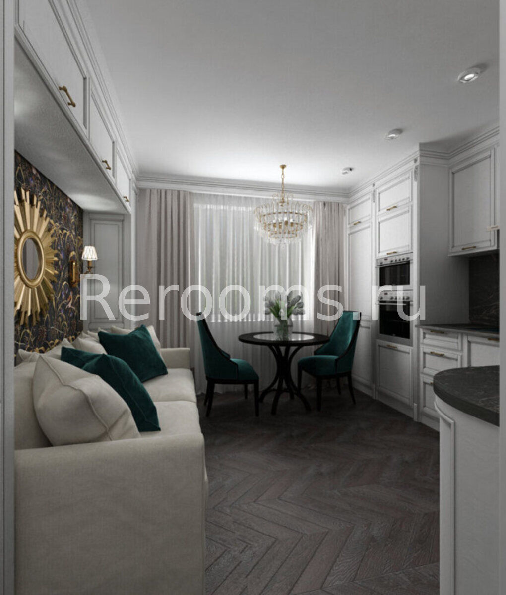 Фото № 6: Дизайн-проект однокомнатной квартиры 50.3  м² стиль Современная классика для ЖК Екатерининский