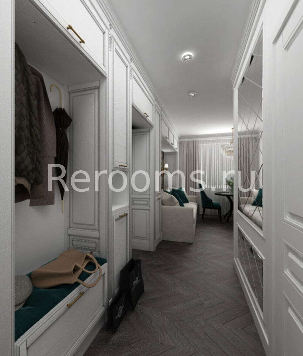 Фото № 3: Дизайн-проект однокомнатной квартиры 50.3  м² стиль Современная классика для ЖК Екатерининский