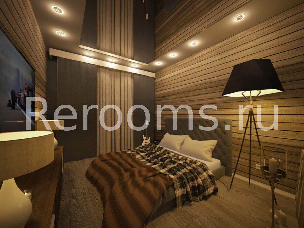 Что же касается освещения, то в данном проекте вариативность приборов сведена к минимуму и представлены всего несколькими видами. Представлены они точечными светильниками, люстрой и торшерами, так же есть встроенная подсветка над спальным местом.