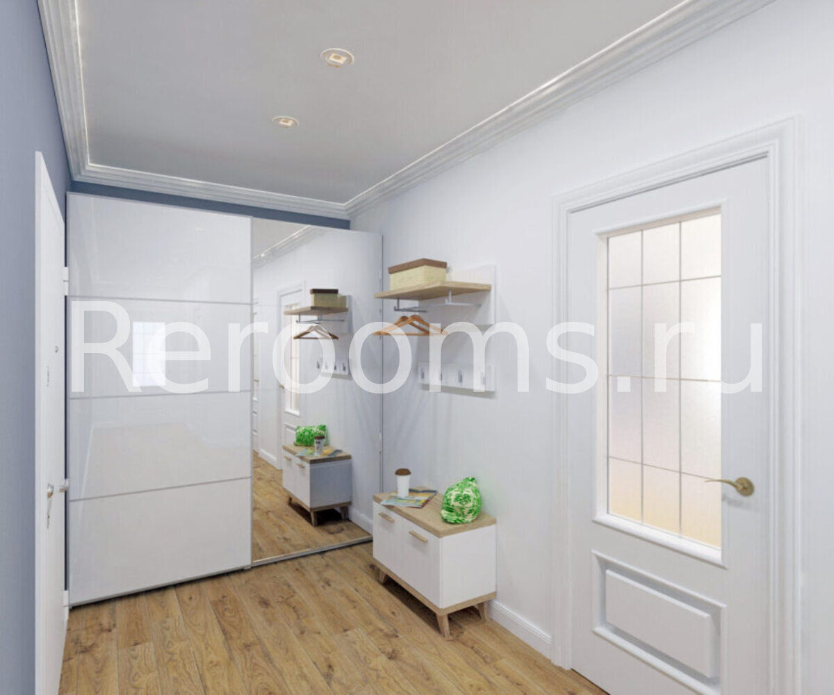 Дизайн квартиры ориентирован на молодую пару, которая только начинает жить вместе. В проекте предусмотрено рабочее место, которое отлично подойдет для учебы и работы. Помимо отдельной просторной спальни имеется дополнительное спальное место в гостиной. Проект выполнен в светлых, спокойных и нейтральных тонах, что придает помещению воздушность и универсальность. Освещение продумано в каждой комнате, что немаловажно. Наиболее выигрышным для интерьеров в стиле «модернизм» считается достаточно мягкое неяркое освещение.