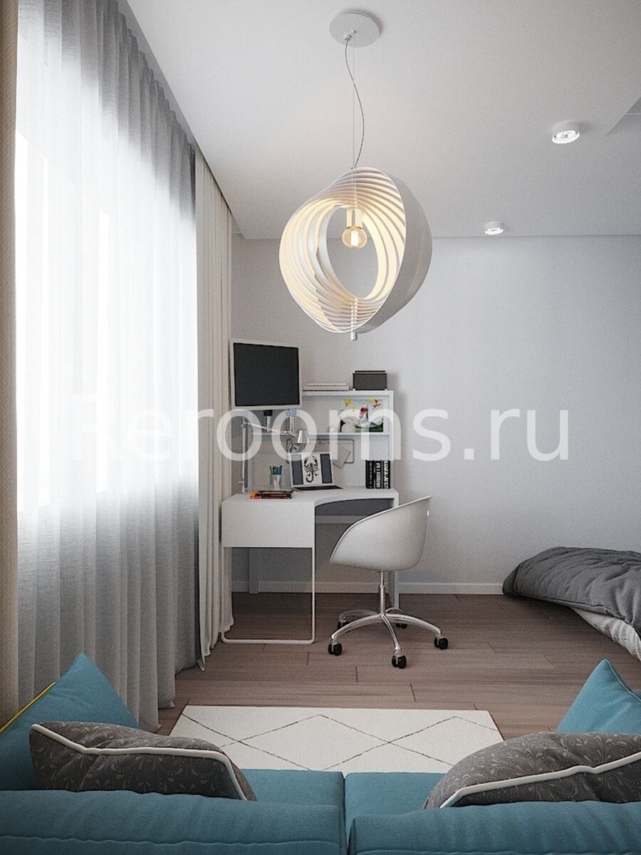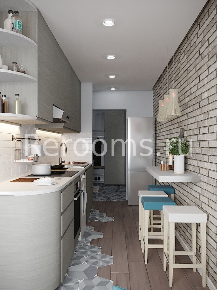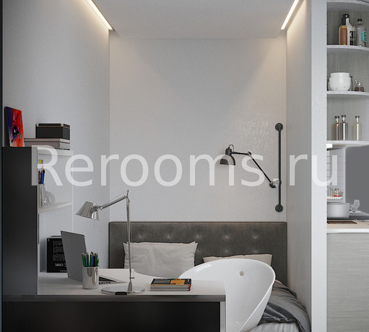 Дизайн-проект этой небольшой квартиры-студии выполнен в стиле лофт. Интерьер выдержан в светлой цветовой гамме, с соблюдением всех правил лофтовой стилистики. Кирпичная кладка в кухонной зоне придает помещению ультрасовременный вид. Грамотное зонирование позволило поделить пространство квартиры, согласно функциональной нагрузке. Так здесь оборудовали не только кухню и гостиную, но и миниатюрную спальню с полноценной кроватью и рабочий уголок.