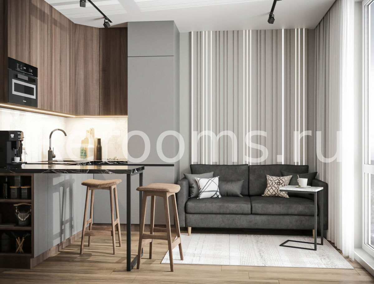 Разрабатывая проект этой однокомнатной квартиры, дизайнер ориентировалась на основы современного стиля. Функционализм и эстетическая привлекательность здесь на главных ролях. Сдержанная палитра с использованием различных оттенков серого придает пространству ультрамодный вид.