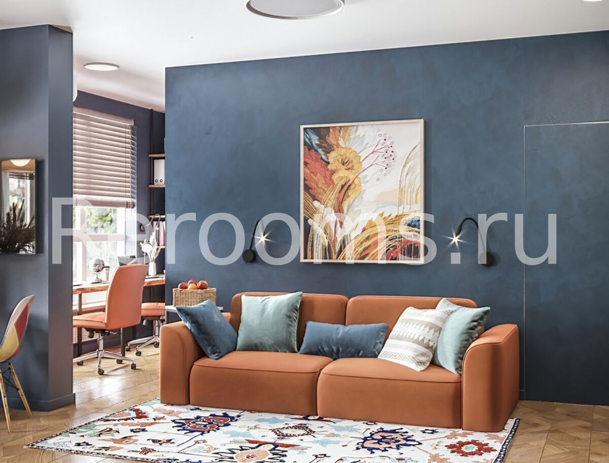 В стилистическом отношении интерьер этой трехкомнатной квартиры достаточно эклектичен. Здесь четко наблюдается смешение разных стилей, которые в конечном счете формируют настроение и характер пространства. В оформлении преобладают яркие глубокие тона. Они служат идеальным фоном для стильного декора.