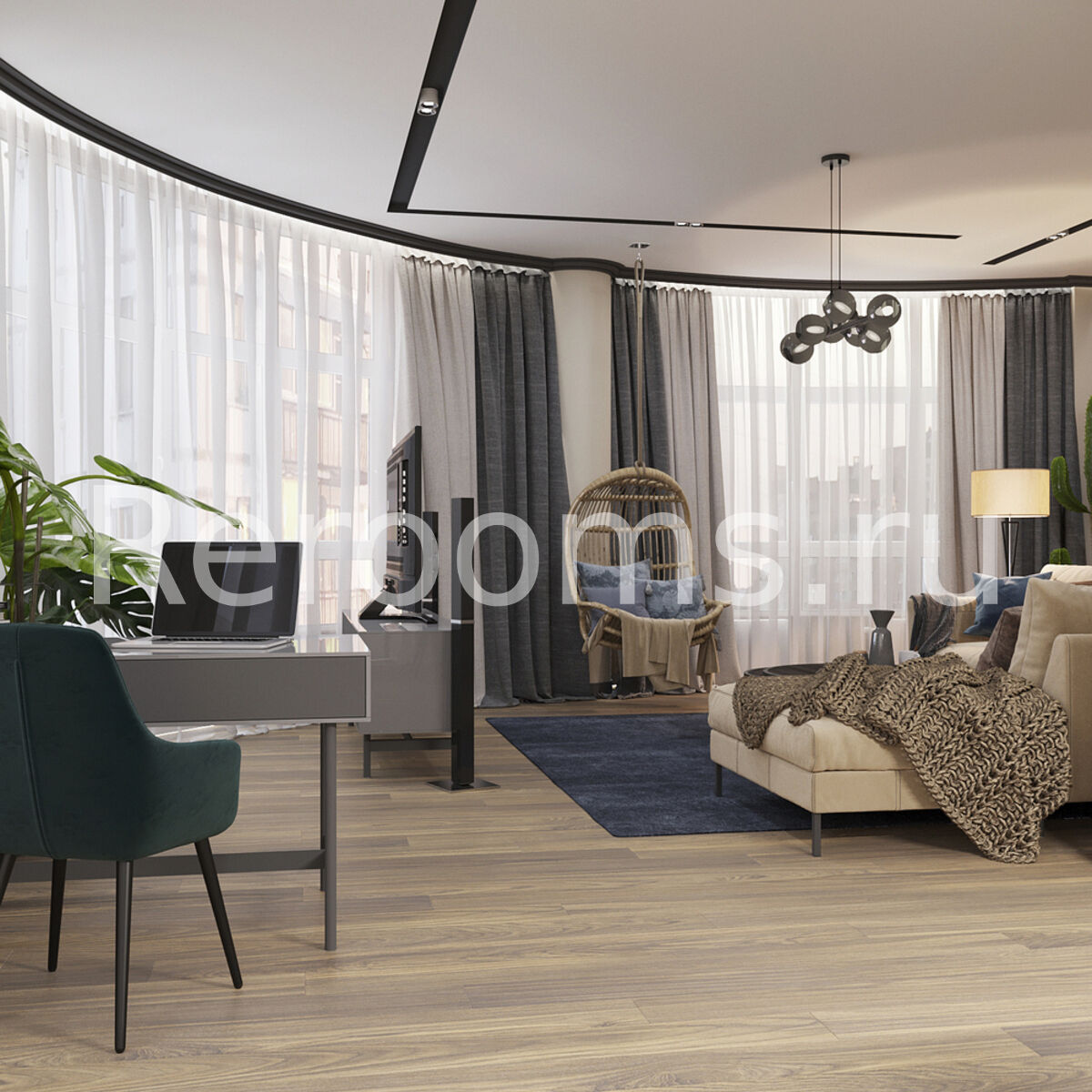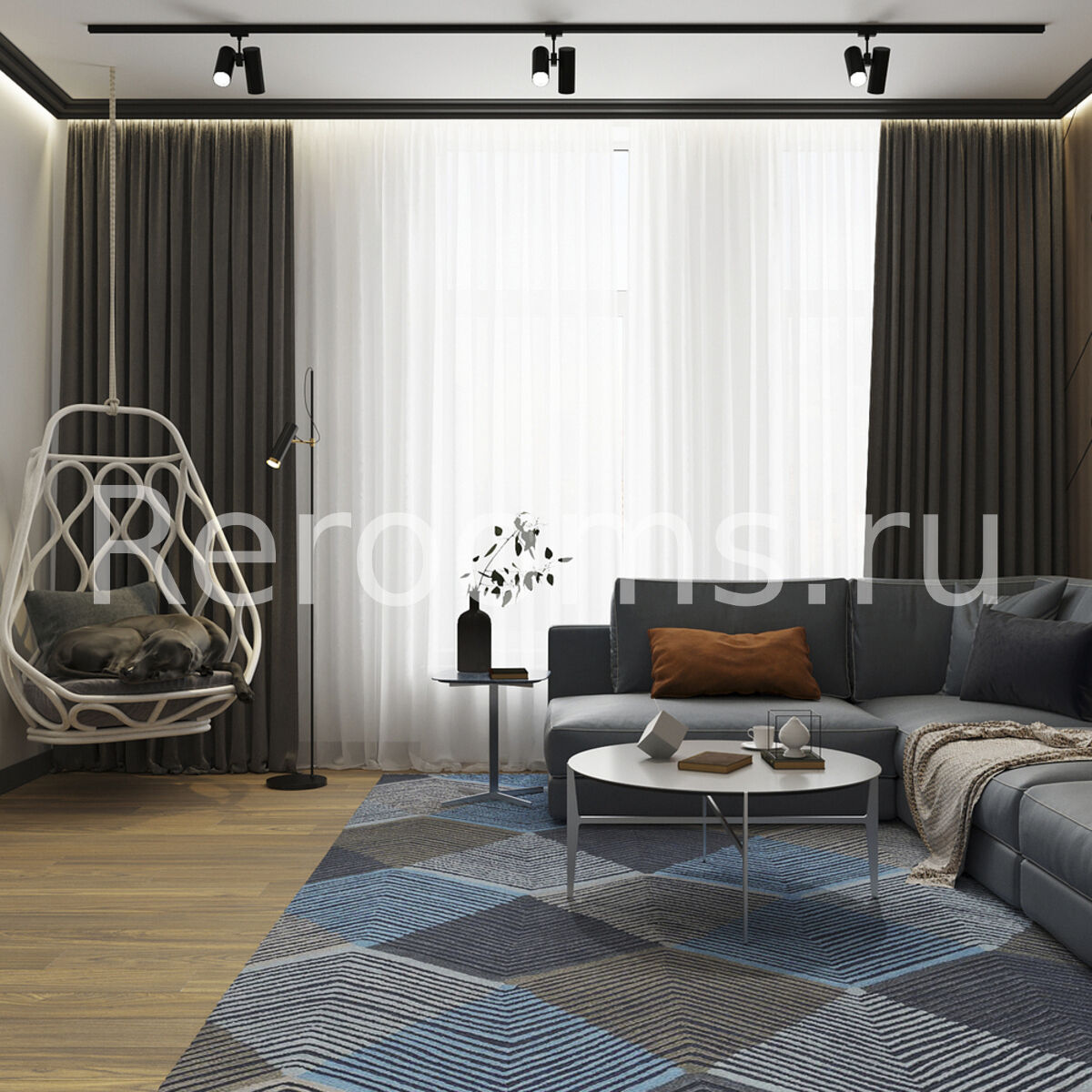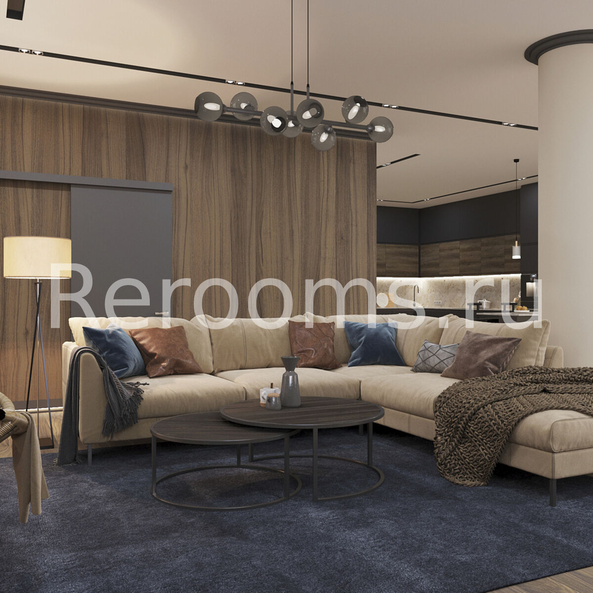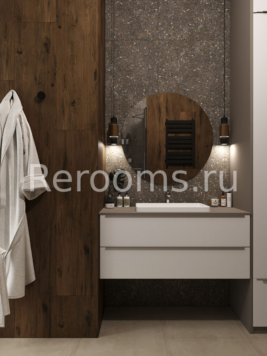 Дизайн-проект этой трехкомнатной квартиры выполнен в стиле модернизм. Во главу угла дизайнер поставила понятия многофункциональности и комфорта. В результате интерьер получился необычайно удобным и эргономичным. Все предметы в квартире сочетаются друг с другом и в полной мере отражают специфику стиля. Спокойная цветовая гамма с использованием глубоких оттенков серого, коричневого и синего создают в помещении атмосферу спокойствия и умиротворения.