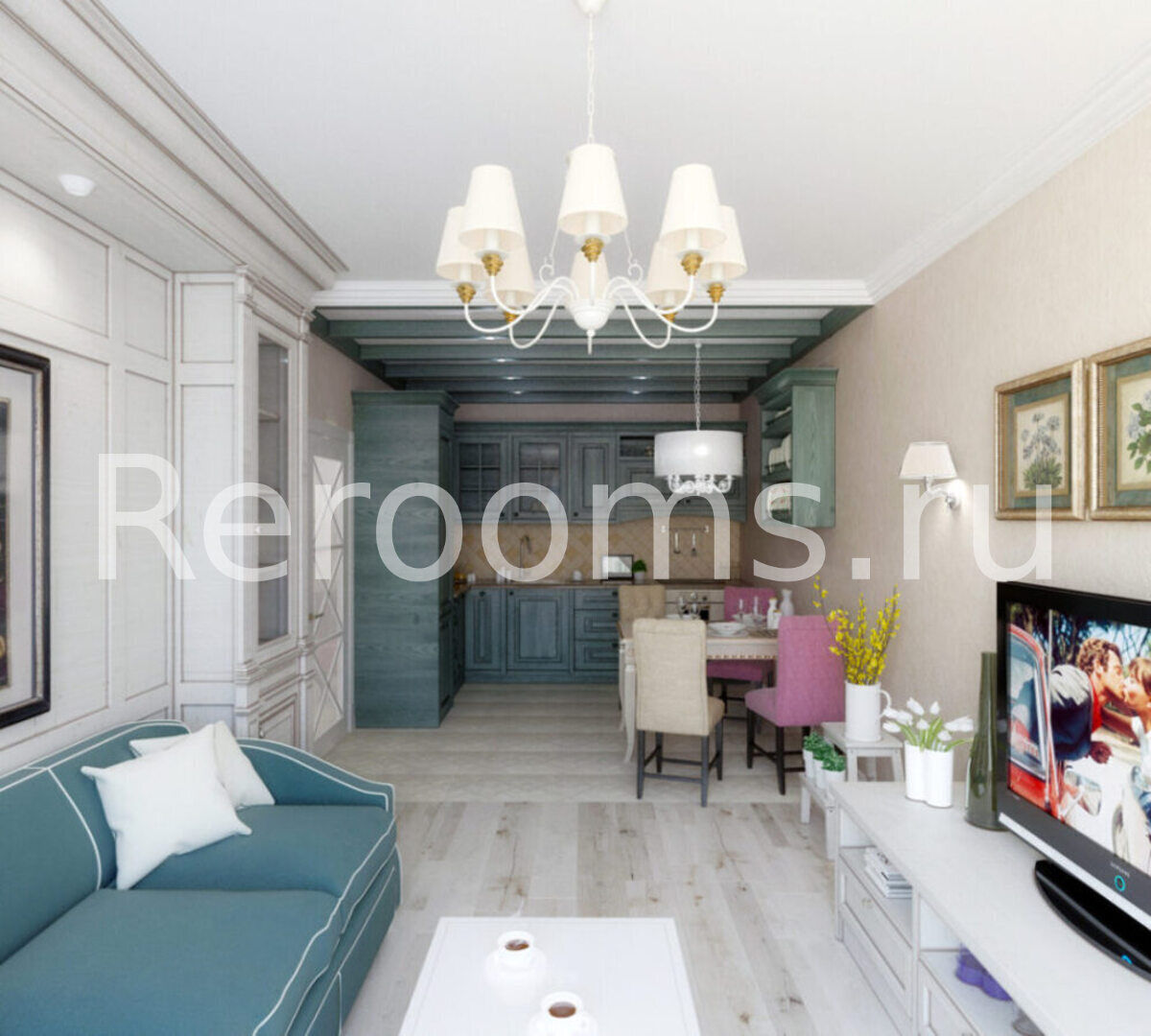 Фото № 2: Дизайн-проект однокомнатной квартиры 45.7  м² стиль Прованс для ЖК Атмосфера