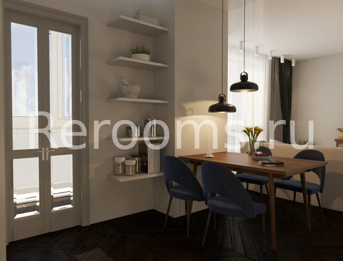 Фото № 4: Дизайн-проект евро двухкомнатной квартиры 58.71  м² стиль Модернизм для ЖК Новаторов